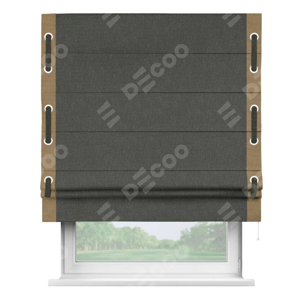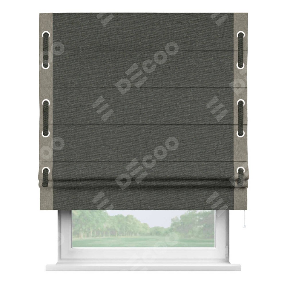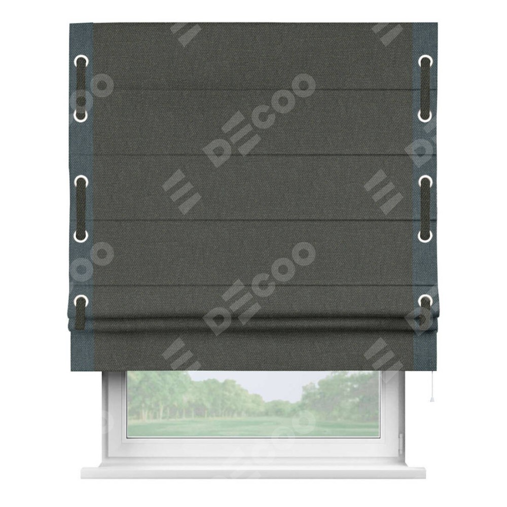 Римская штора «Кортин» с кантом Стрим Дуо (люверсы с пояском), для проема, ткань лён димаут, графитово-серый