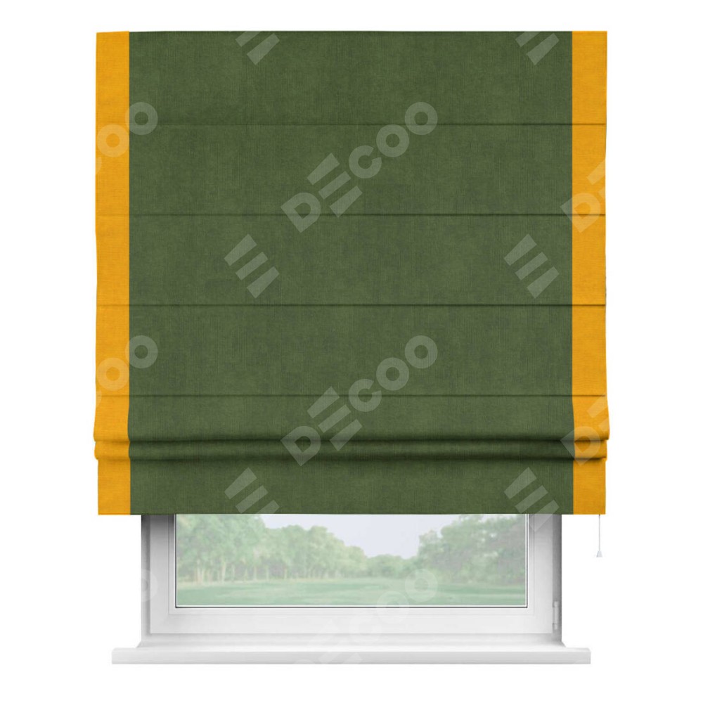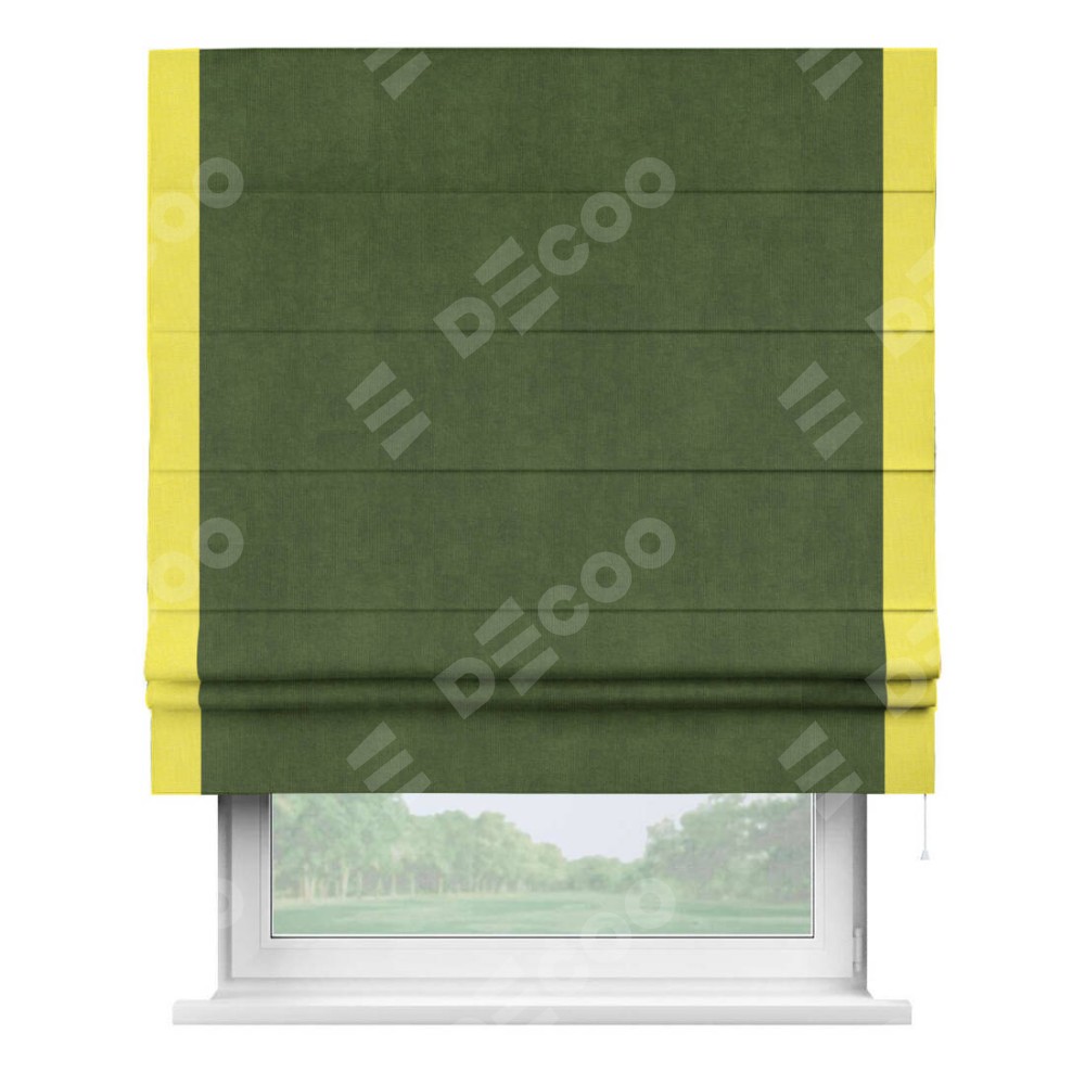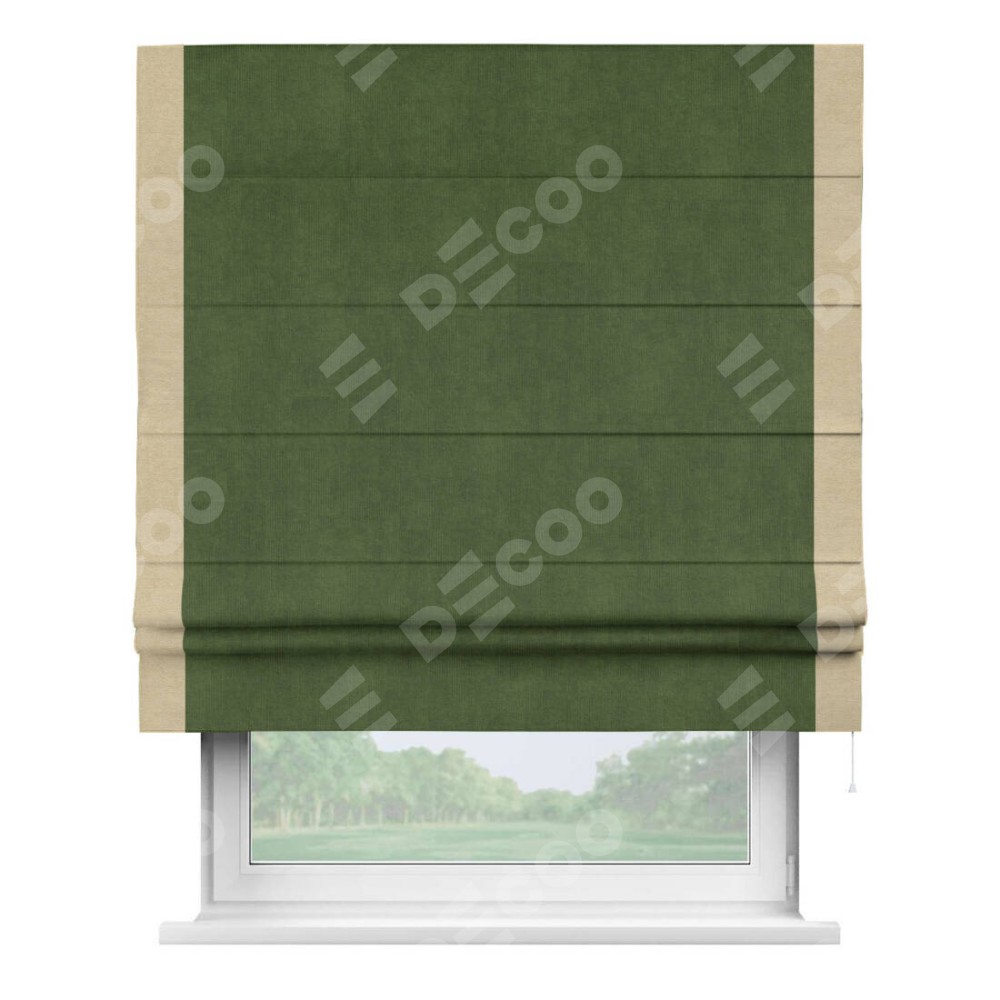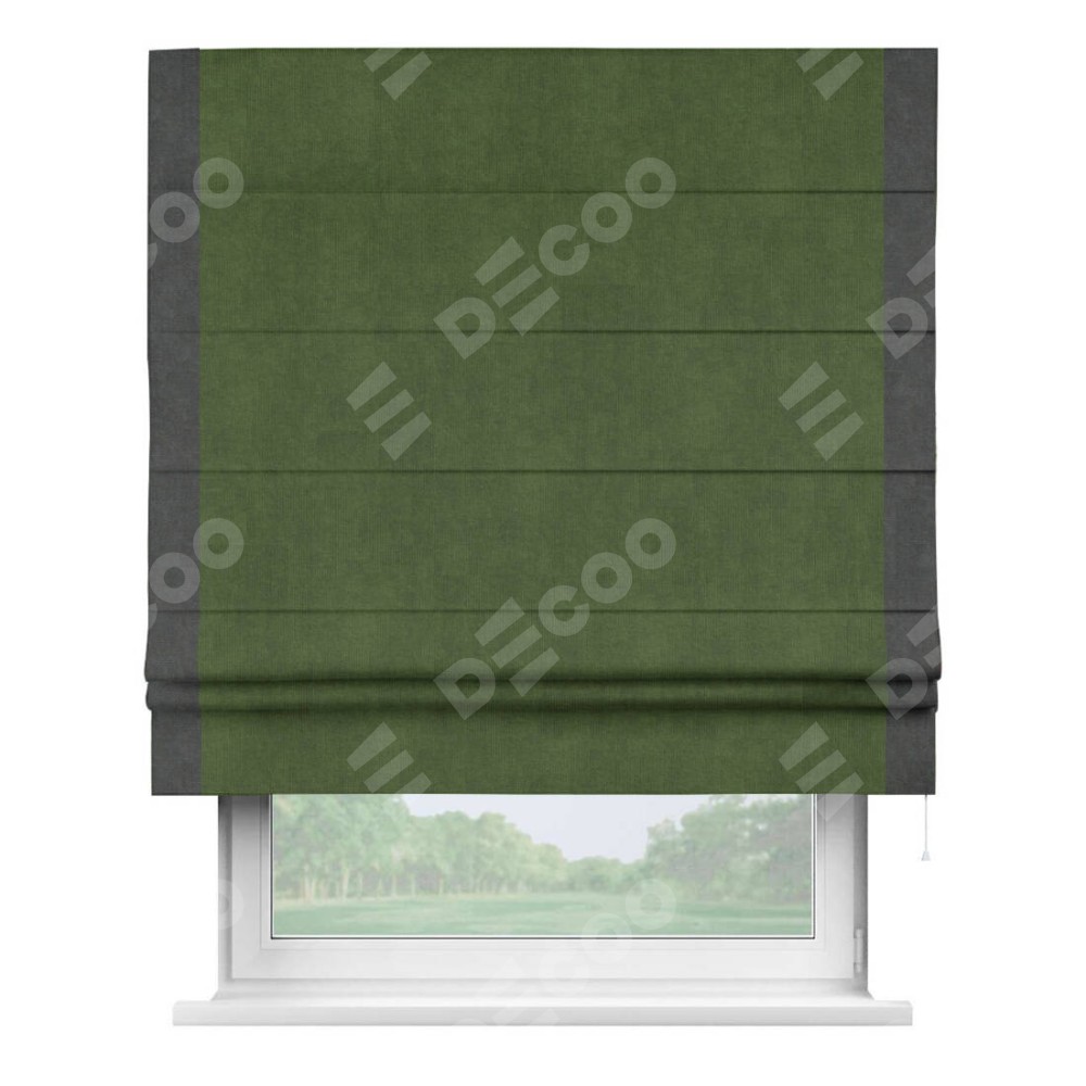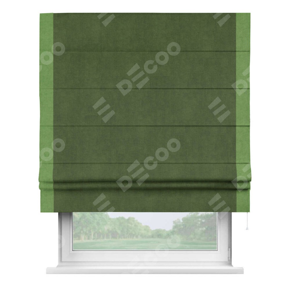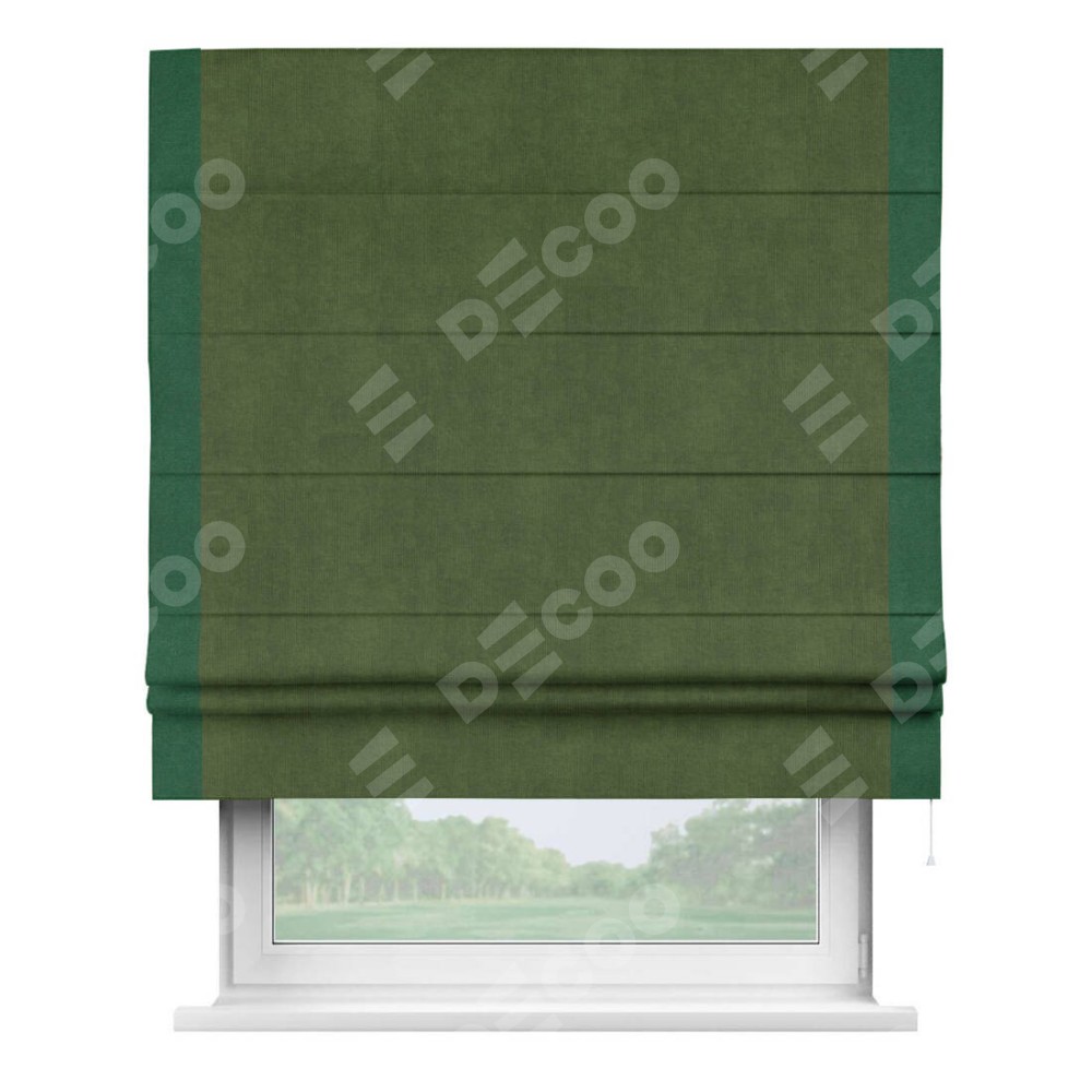 Римская штора «Кортин» с кантом Стрим Дуо, для проема, ткань вельвет тёмно-салатовый