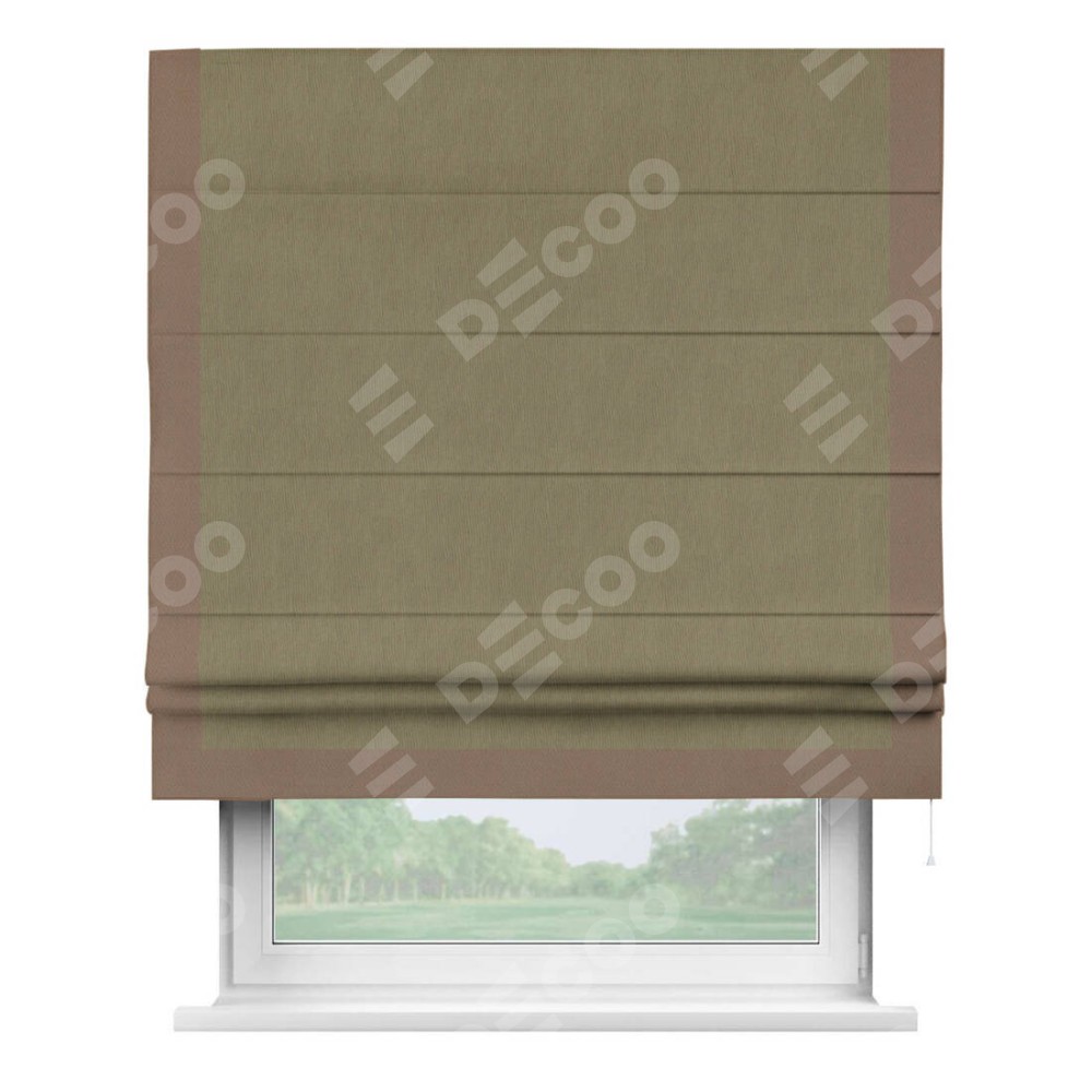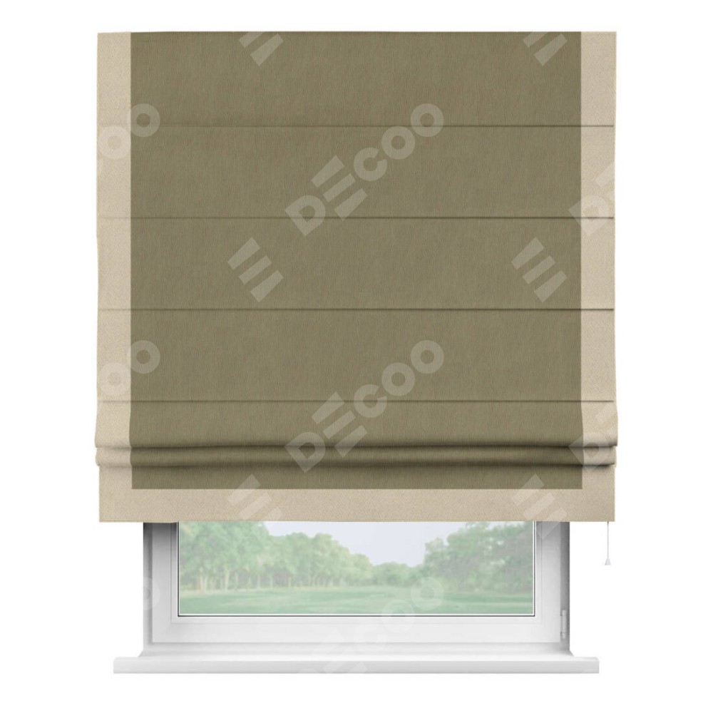 Римская штора «Кортин» с кантом Виктория, для проема, ткань блэкаут однотонный бежево-золотой
