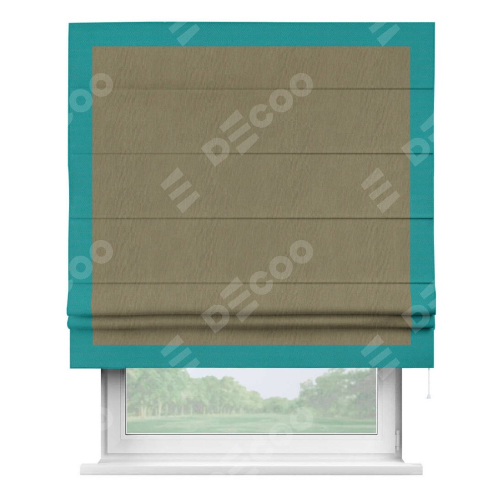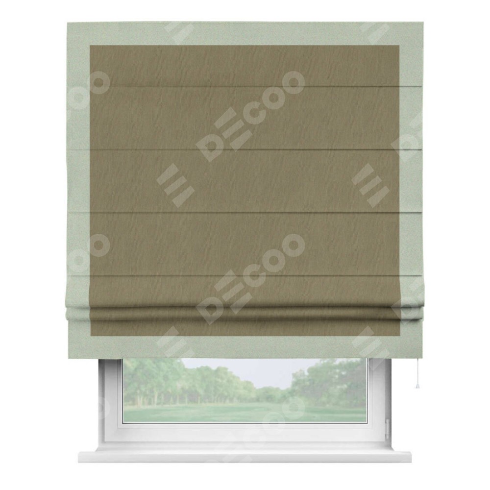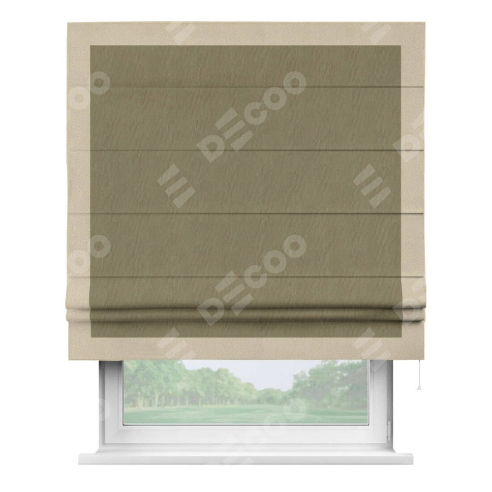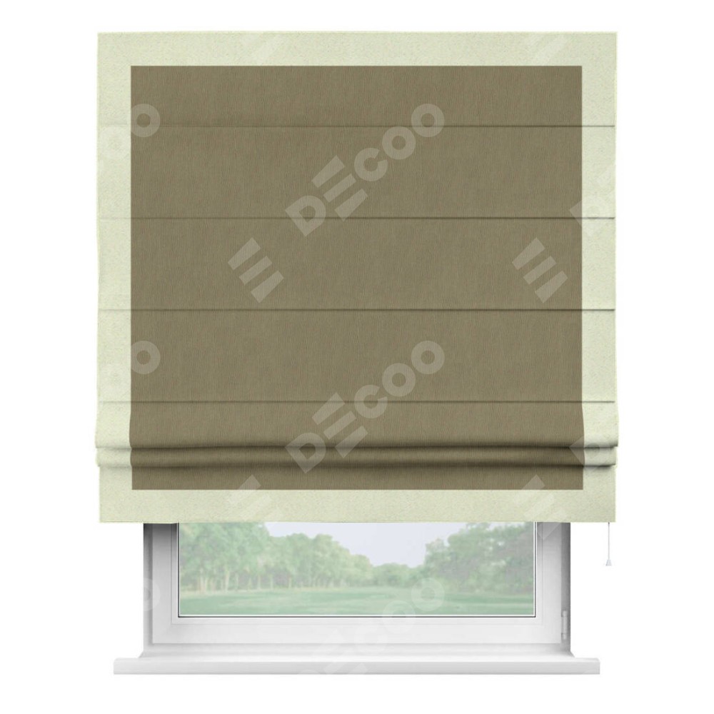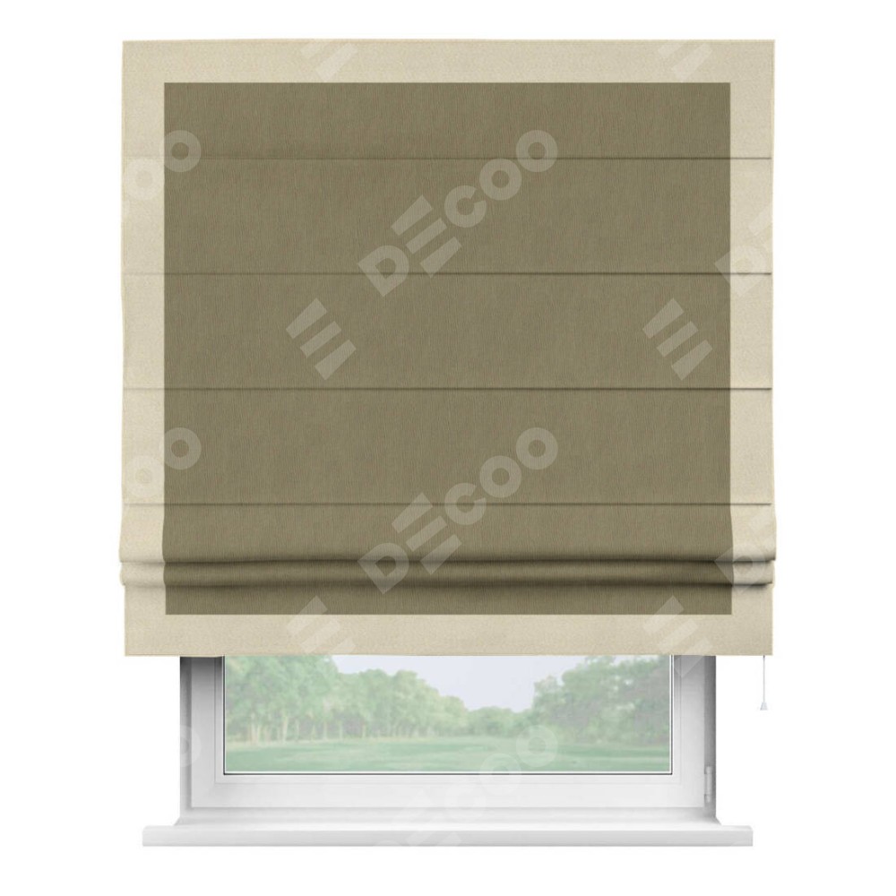 Римская штора «Кортин» с кантом Чесс, для проема, ткань блэкаут однотонный бежево-золотой