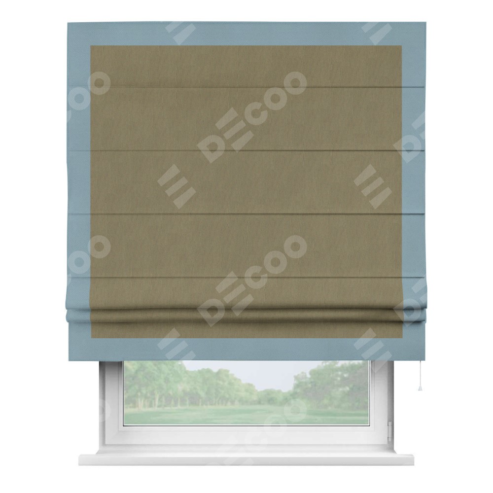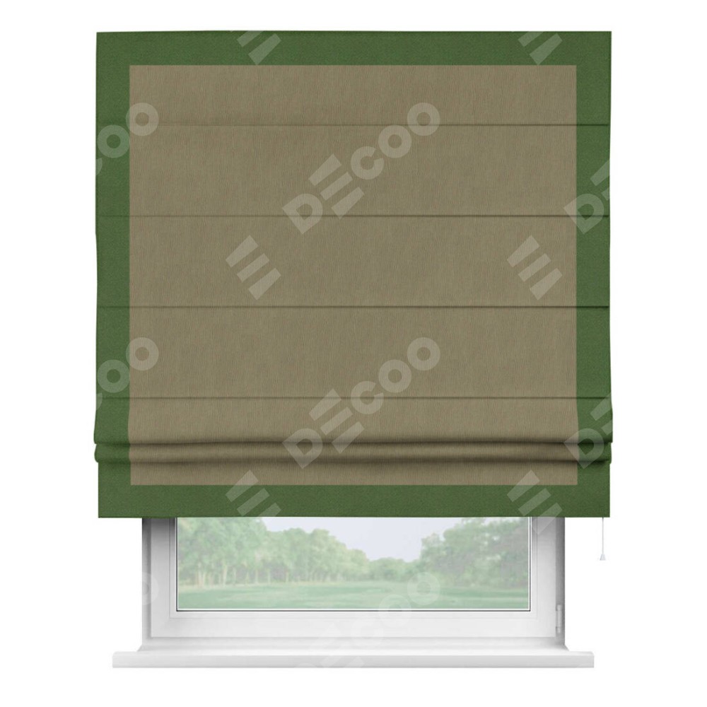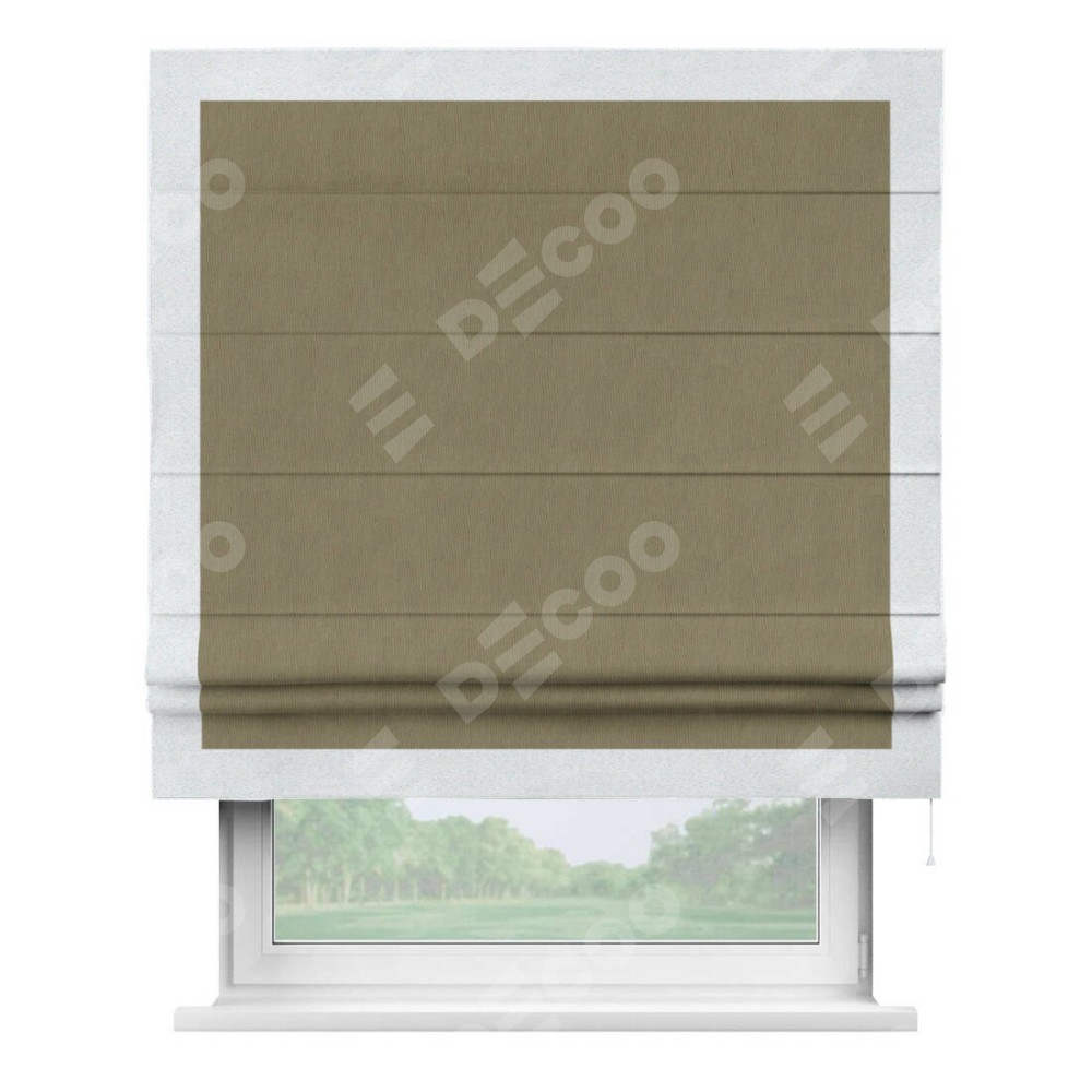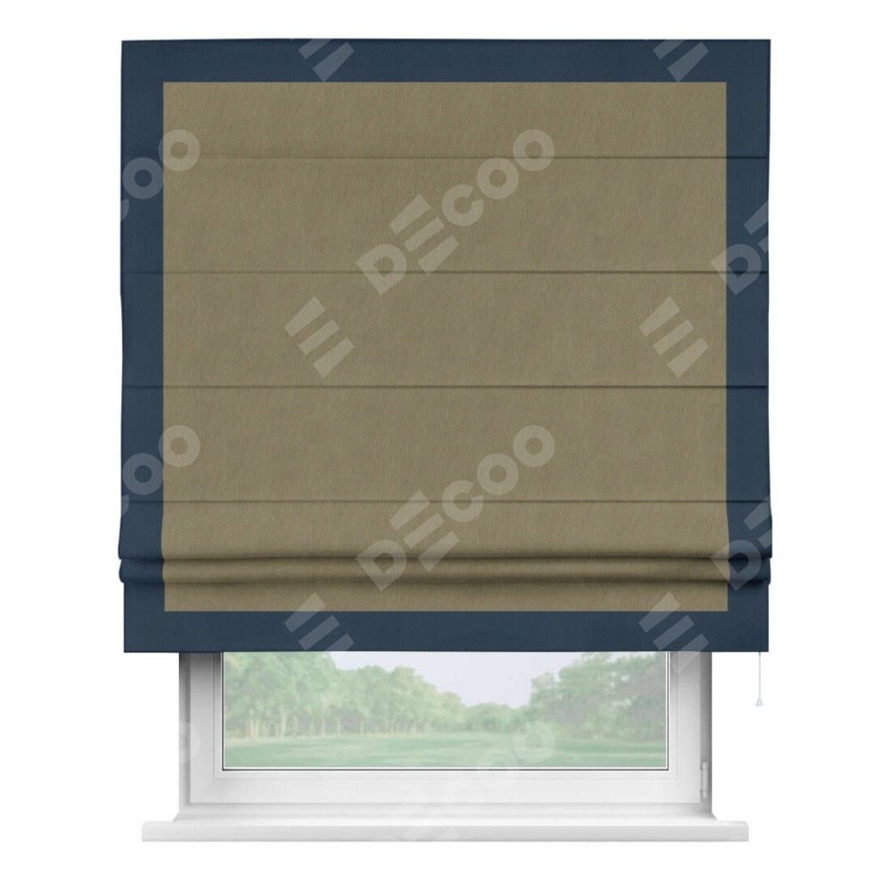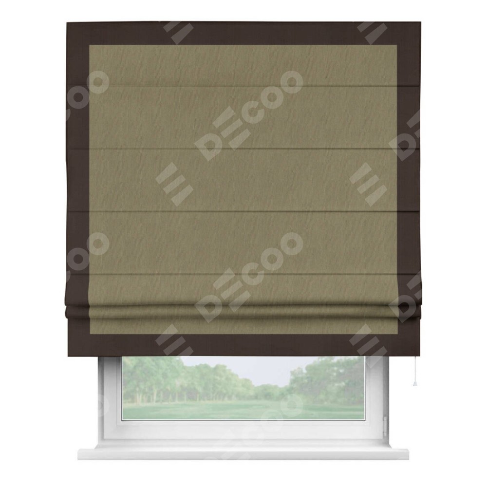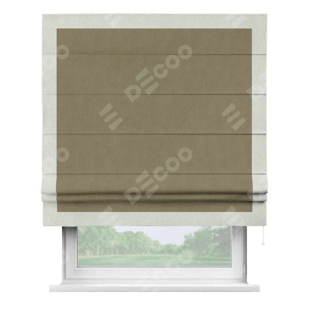 Римская штора «Кортин» с кантом Чесс, для проема, ткань блэкаут однотонный бежево-золотой