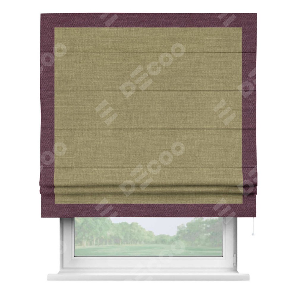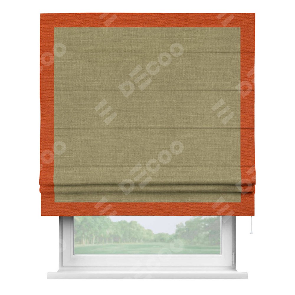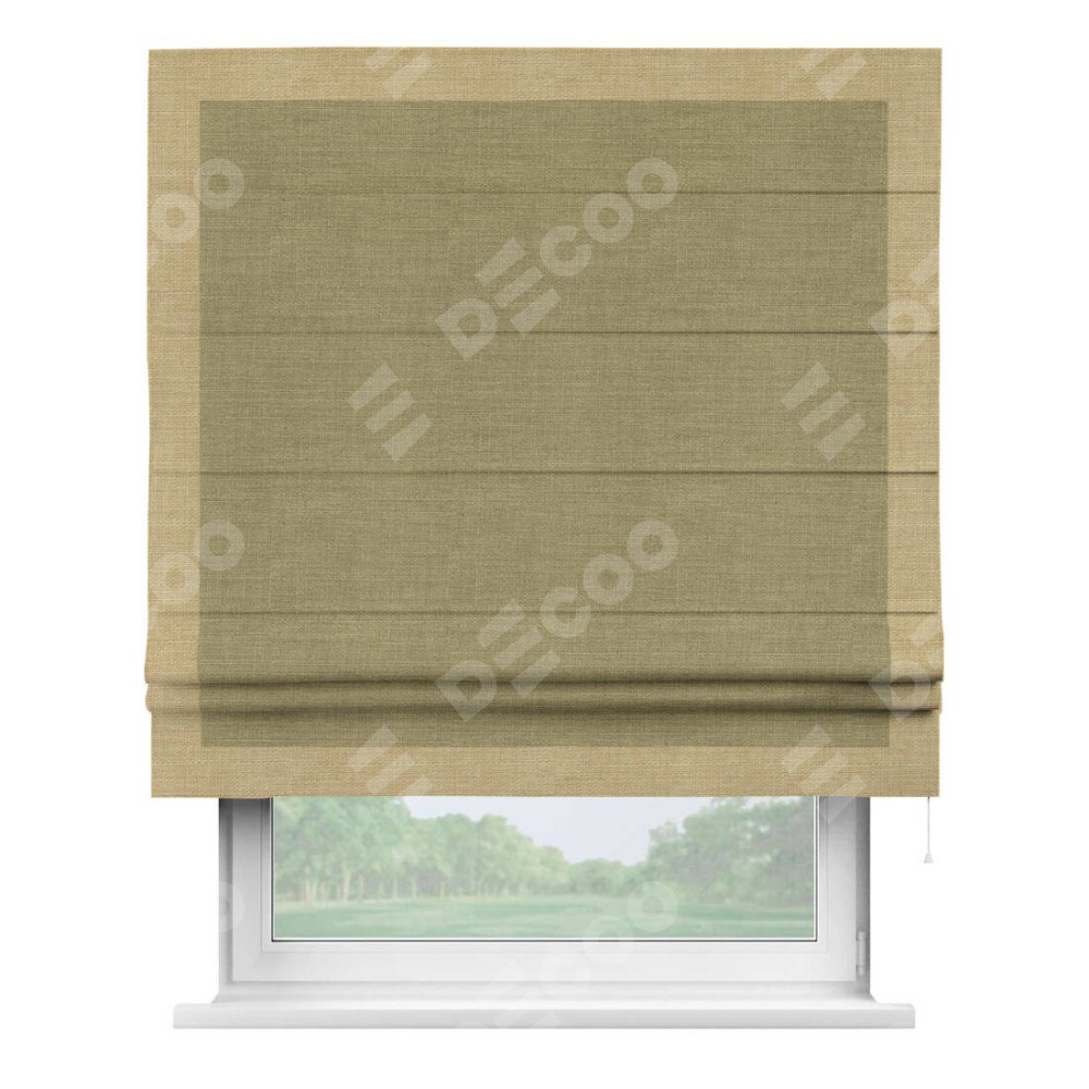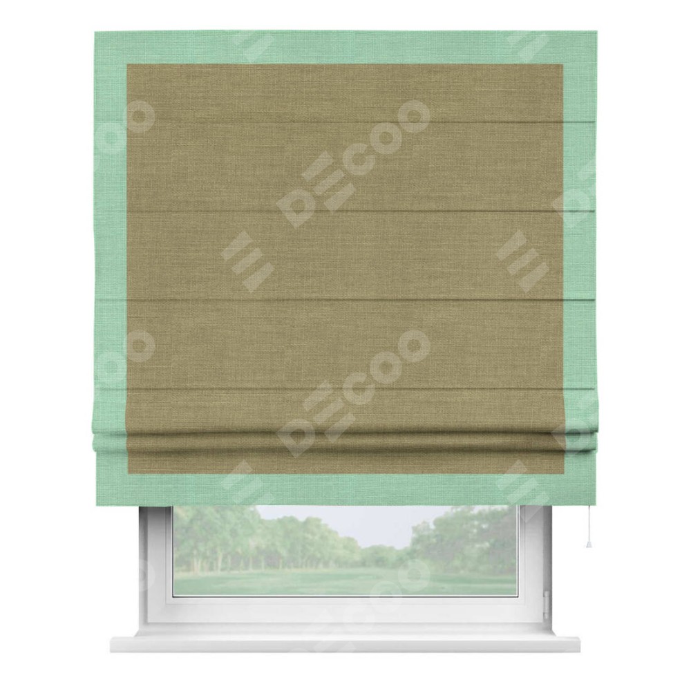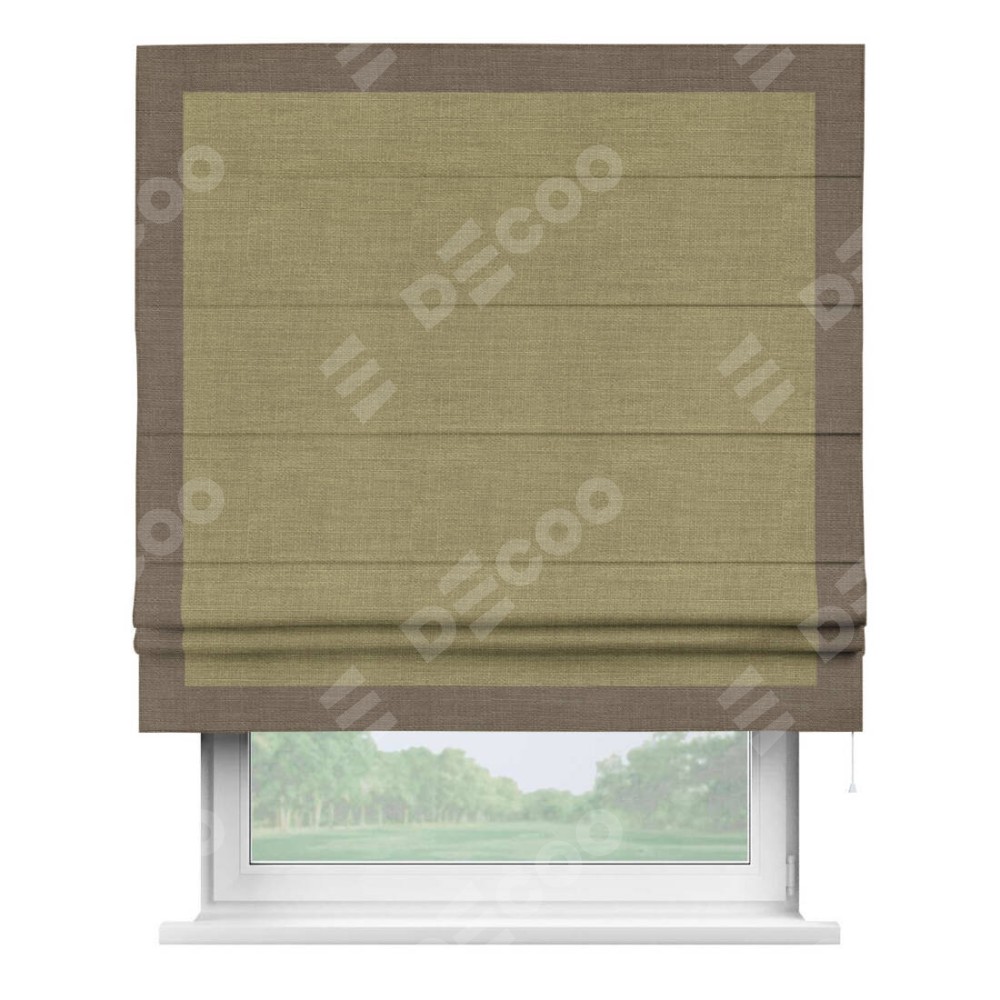 Римская штора «Кортин» с кантом Чесс, для проема, ткань лён, цвет коричневый