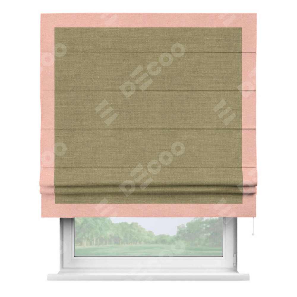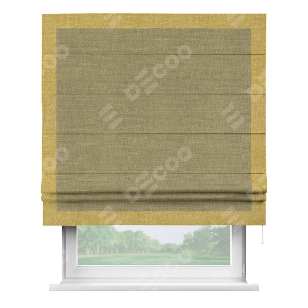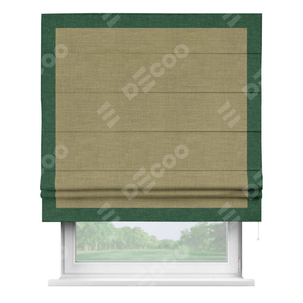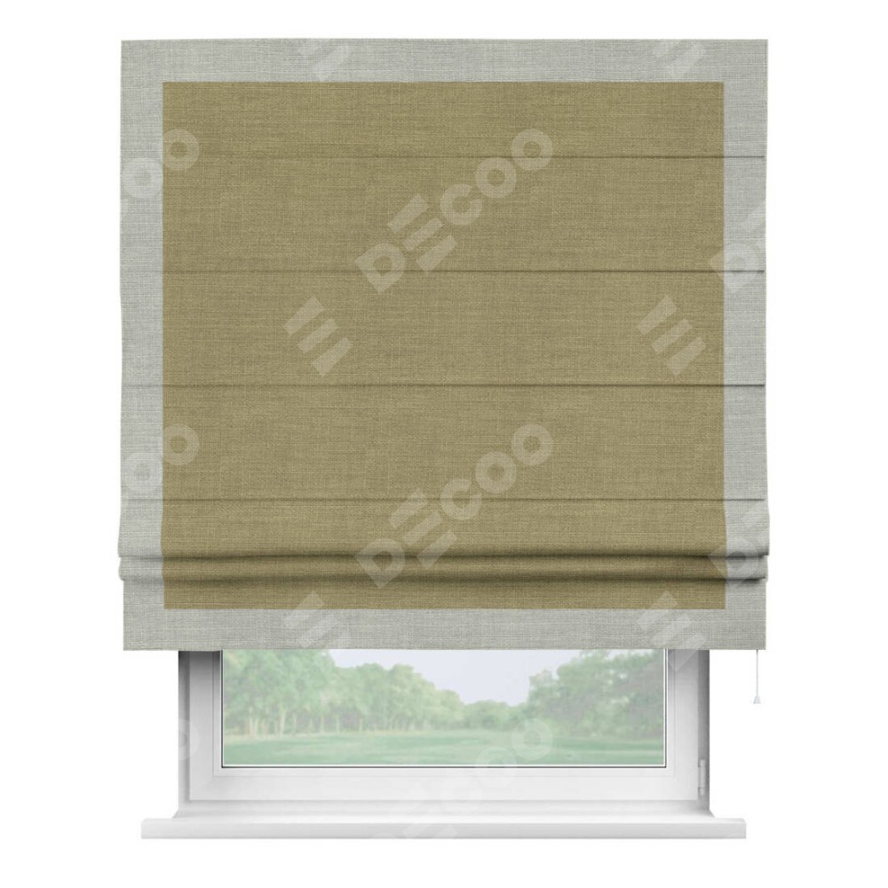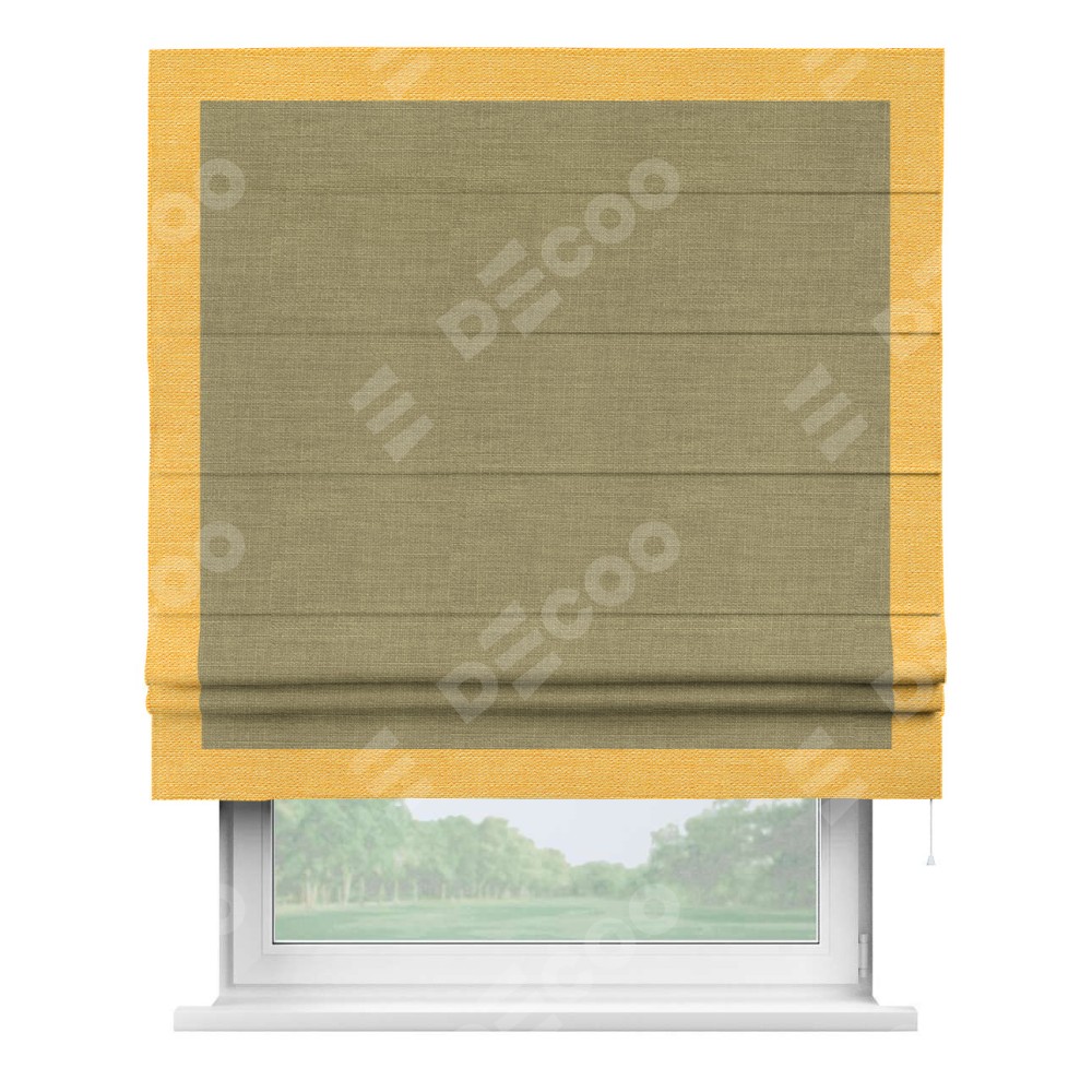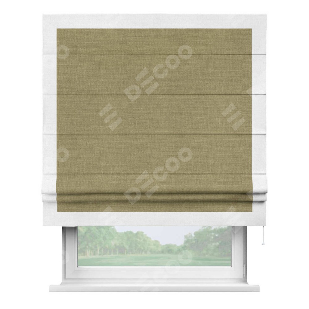 Римская штора «Кортин» с кантом Чесс, для проема, ткань лён, цвет коричневый