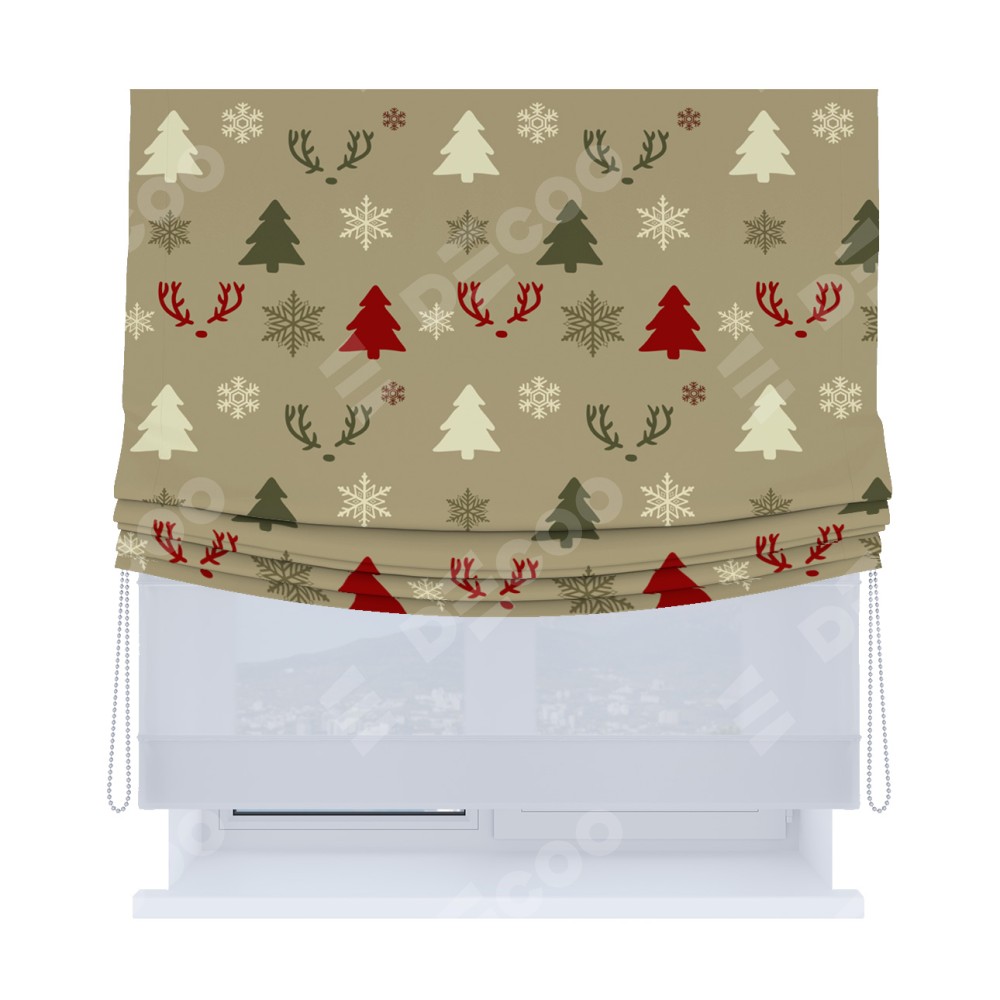 Римская штора «Кортин», день-ночь с мягкими складками, «Гармония рождества»