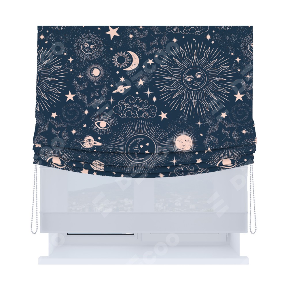 Римская штора «Кортин», день-ночь с мягкими складками, «Звёзды и планеты»