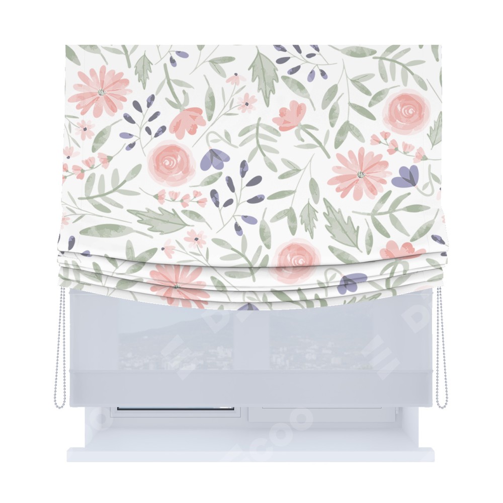 Римская штора день-ночь производителя «Cortin», используется для проёма, пошита из двух полотен, с лицевой блэкаут с нанесением сублимационной печати «Изысканные цветы», вторая ткань тюль (по стандарту комплектуется тюль белого цвета артикул V-01). Имеет универсальный механизм и подходит для монтажа: на потолок, на стену и в нишу. Удобное управление каждой шторой отдельно.