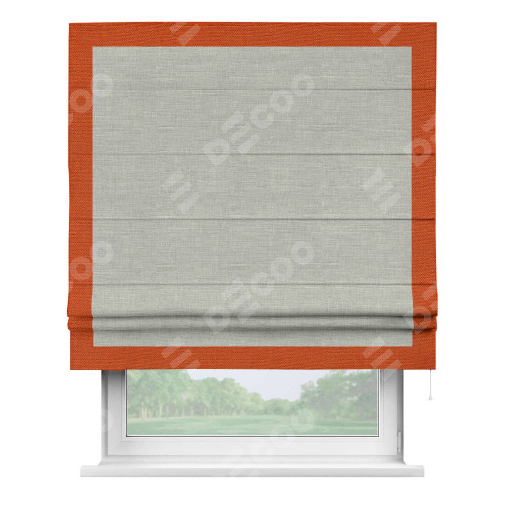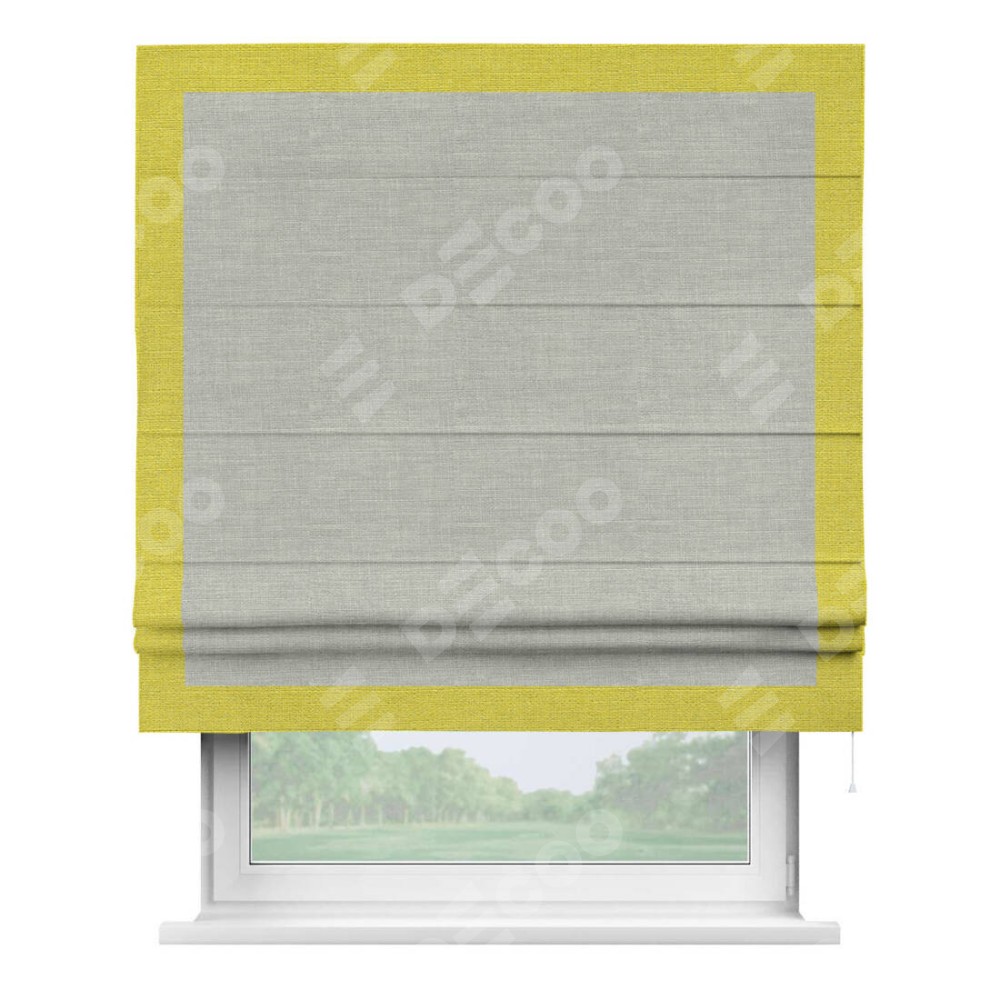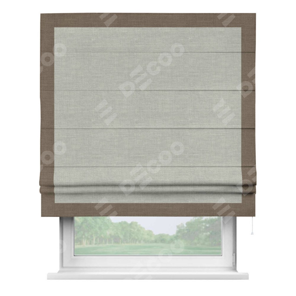 Римская штора «Кортин» с кантом Чесс, для проема, ткань лён серый