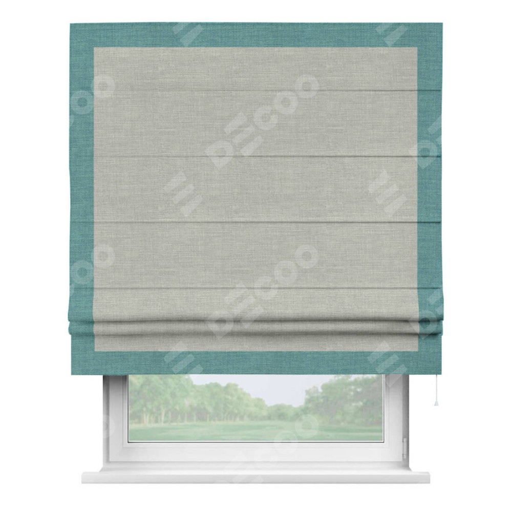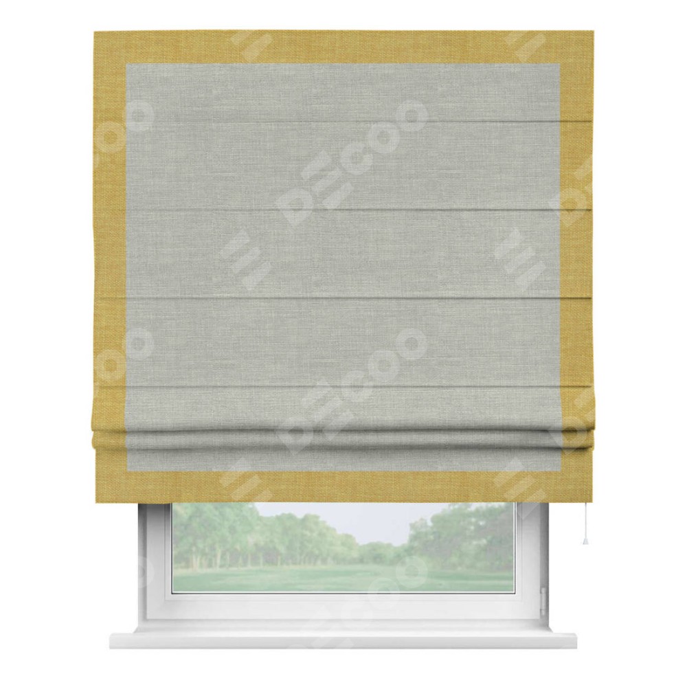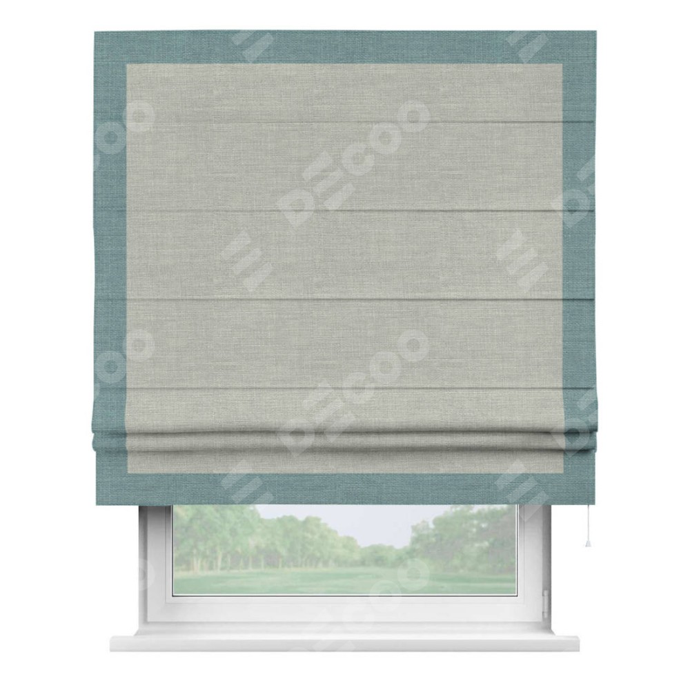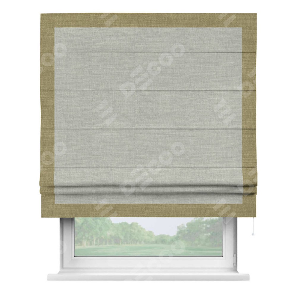 Римская штора «Кортин» с кантом Чесс, для проема, ткань лён серый