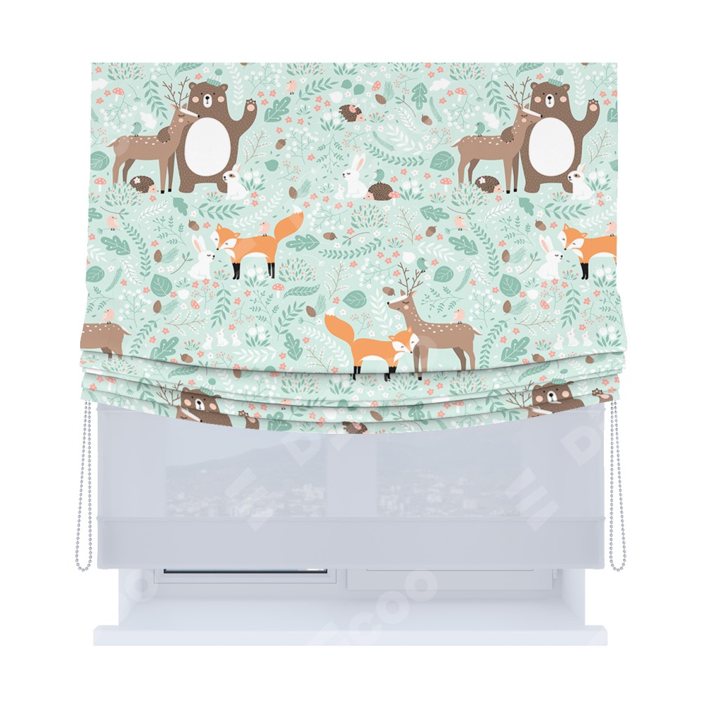 Римская штора «Кортин», день-ночь с мягкими складками, «Лесные друзья»
