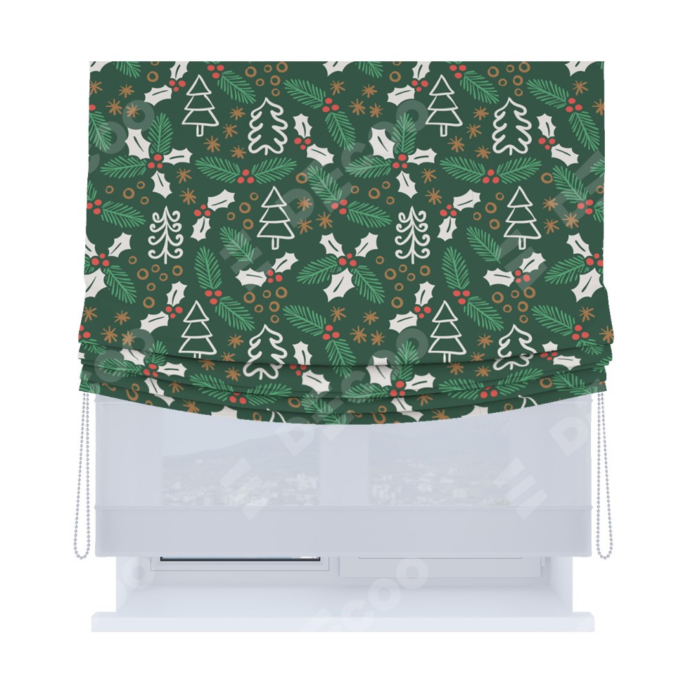 Римская штора «Кортин», день-ночь с мягкими складками, «Рождественский узор»