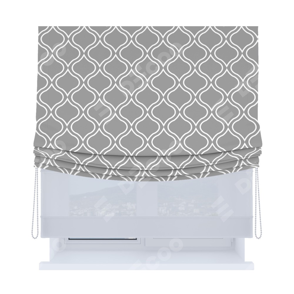 Римская штора «Кортин», день-ночь с мягкими складками, «Тайны востока серый»
