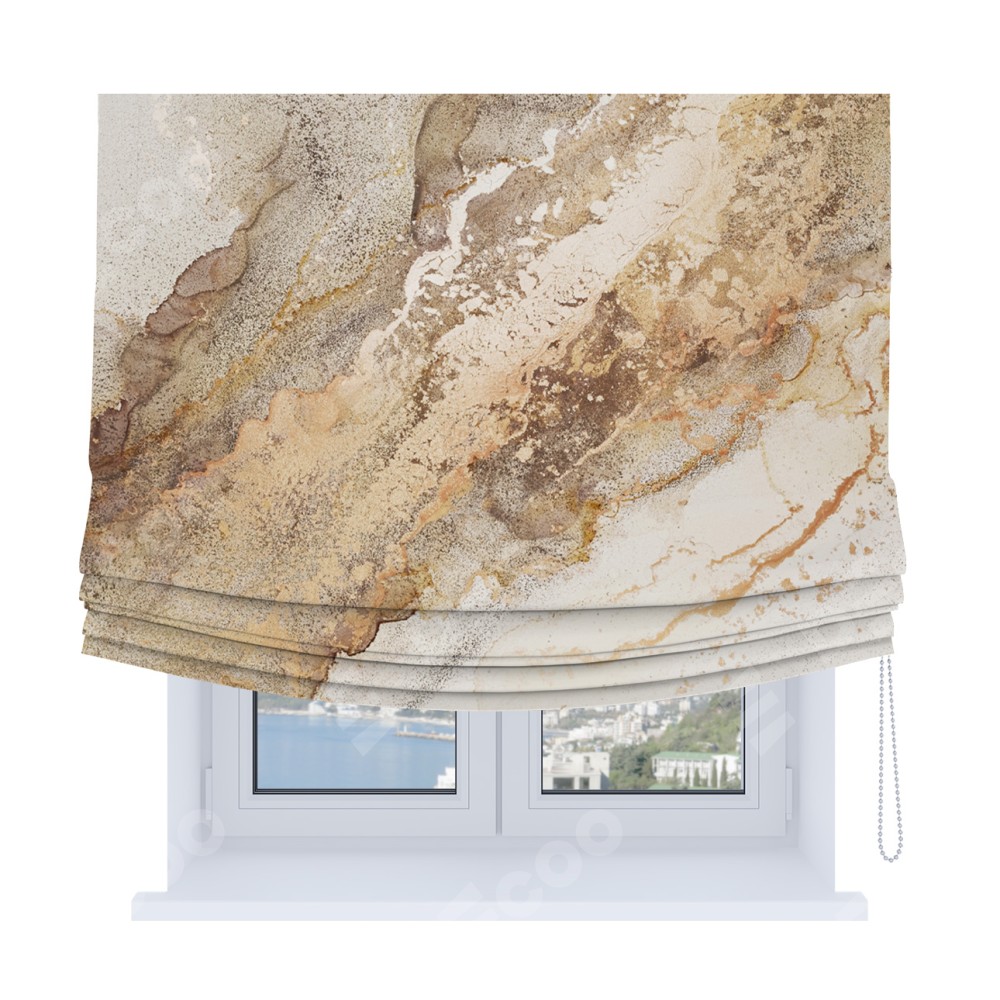 Римская штора Soft с мягкими складками, «Бежево-золотой мрамор»