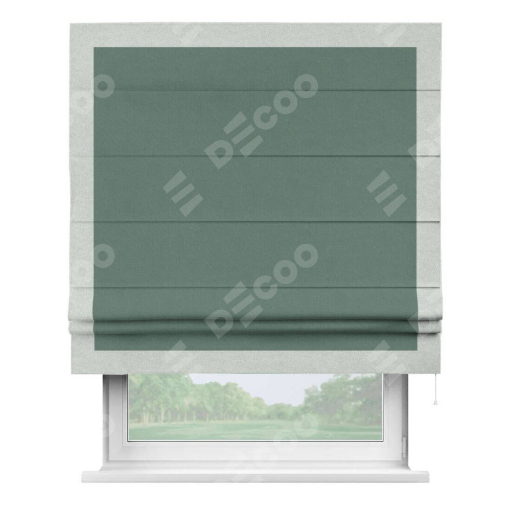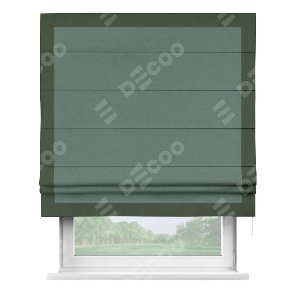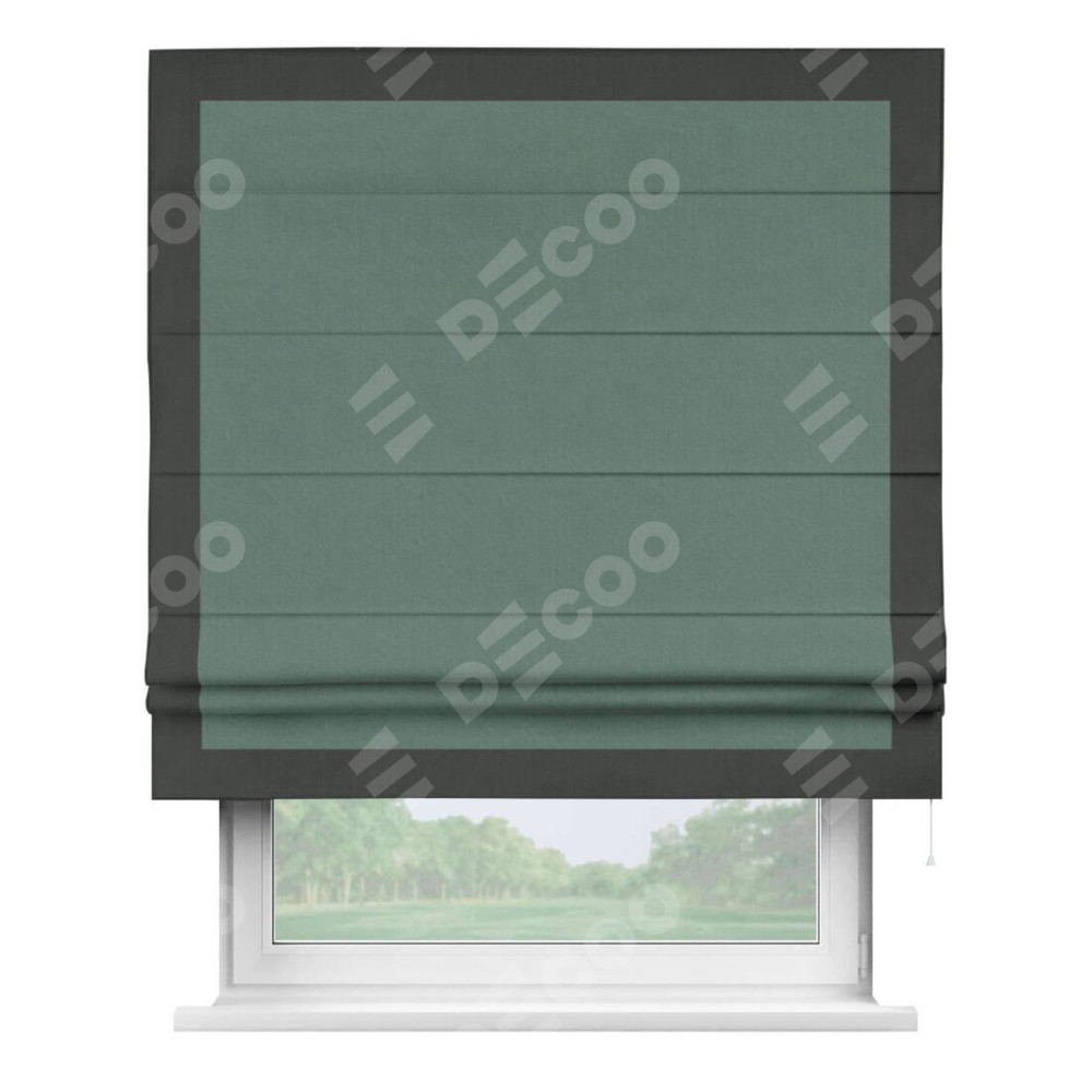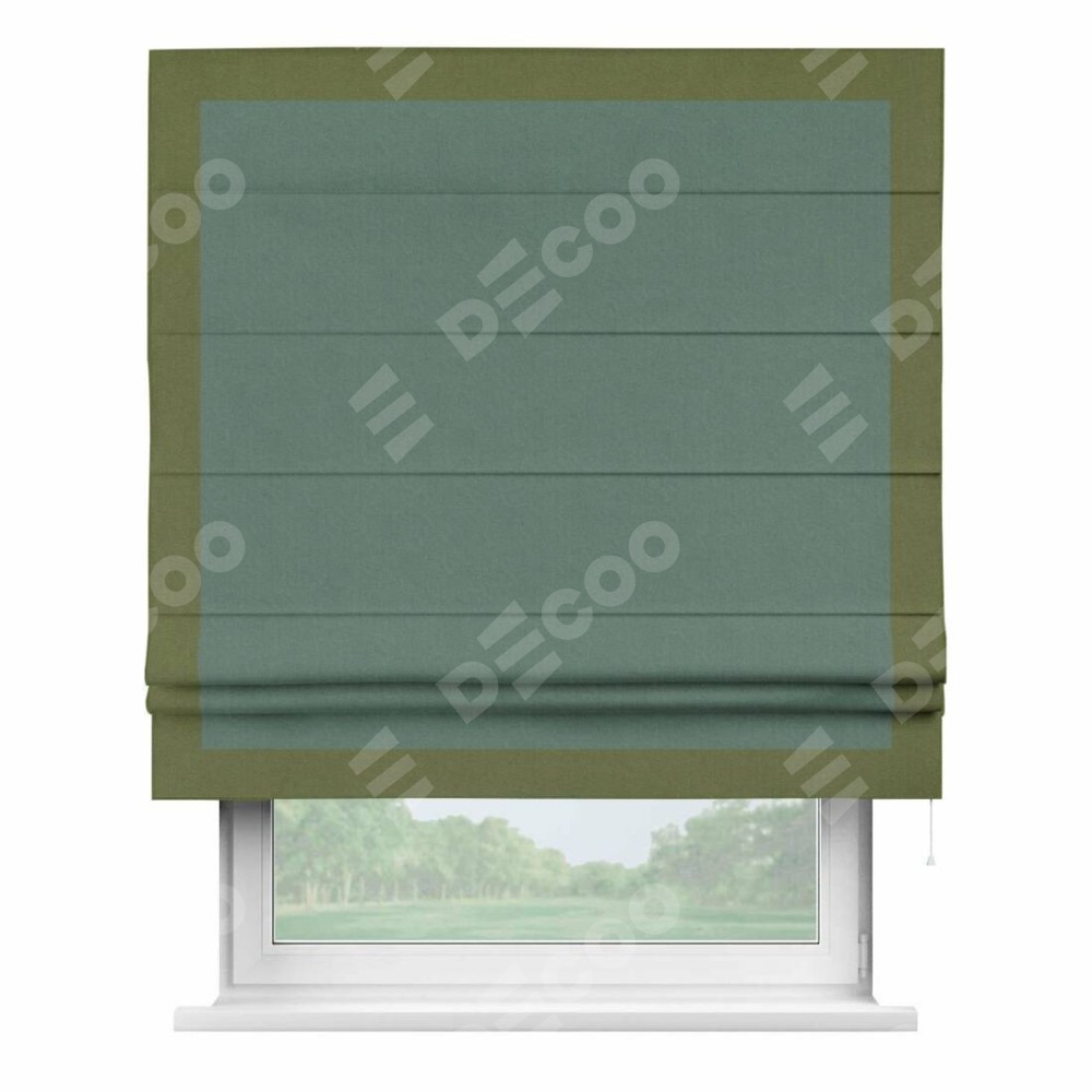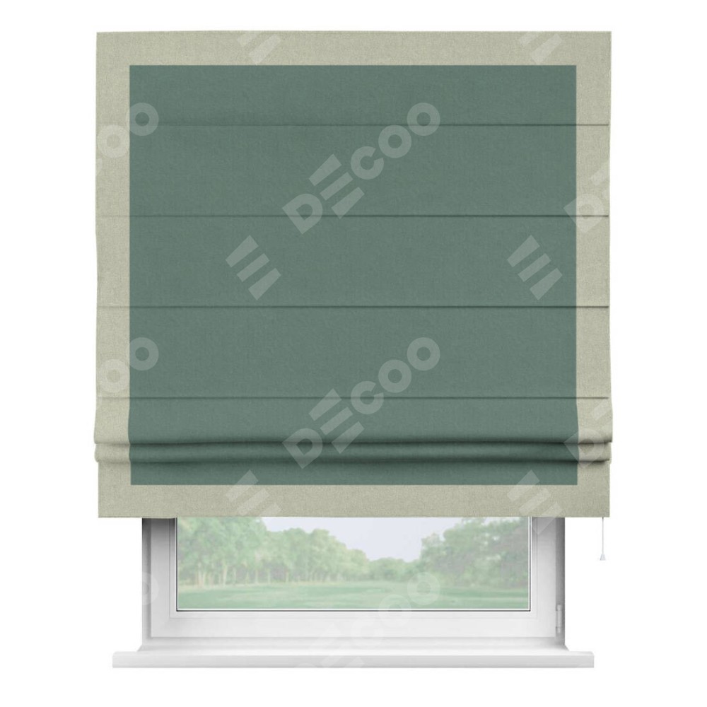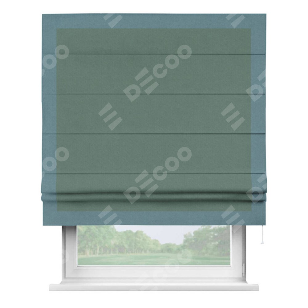 Римская штора «Кортин» с кантом Чесс, для проема, лён блэкаут бирюзовый