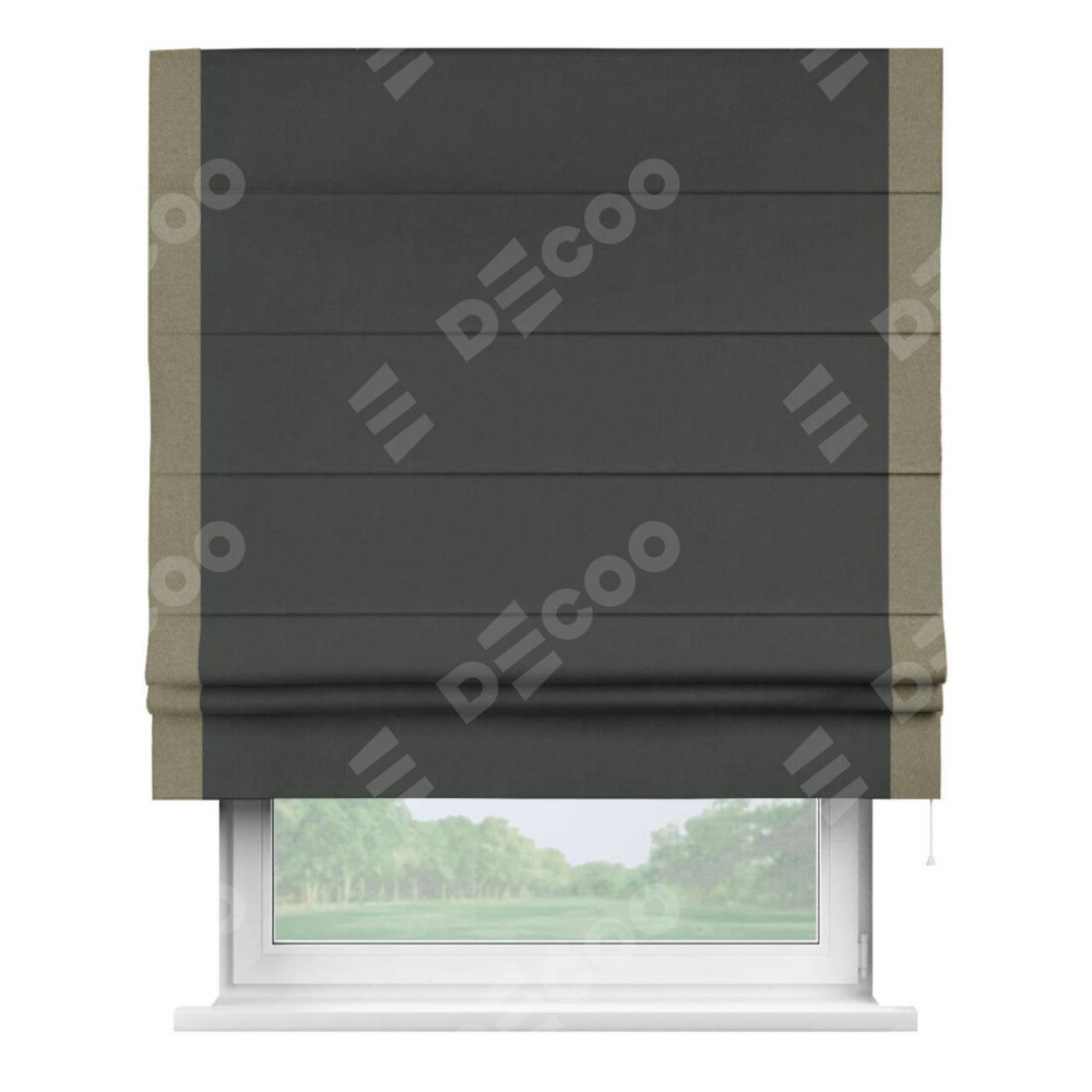 Римская штора «Кортин» с кантом Стрим Дуо, для проема, лён блэкаут графит