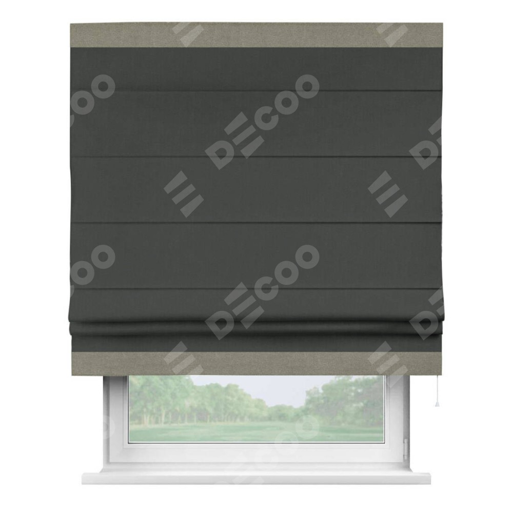 Римская штора «Кортин» с кантом Горизонт, для проема, лён блэкаут графит