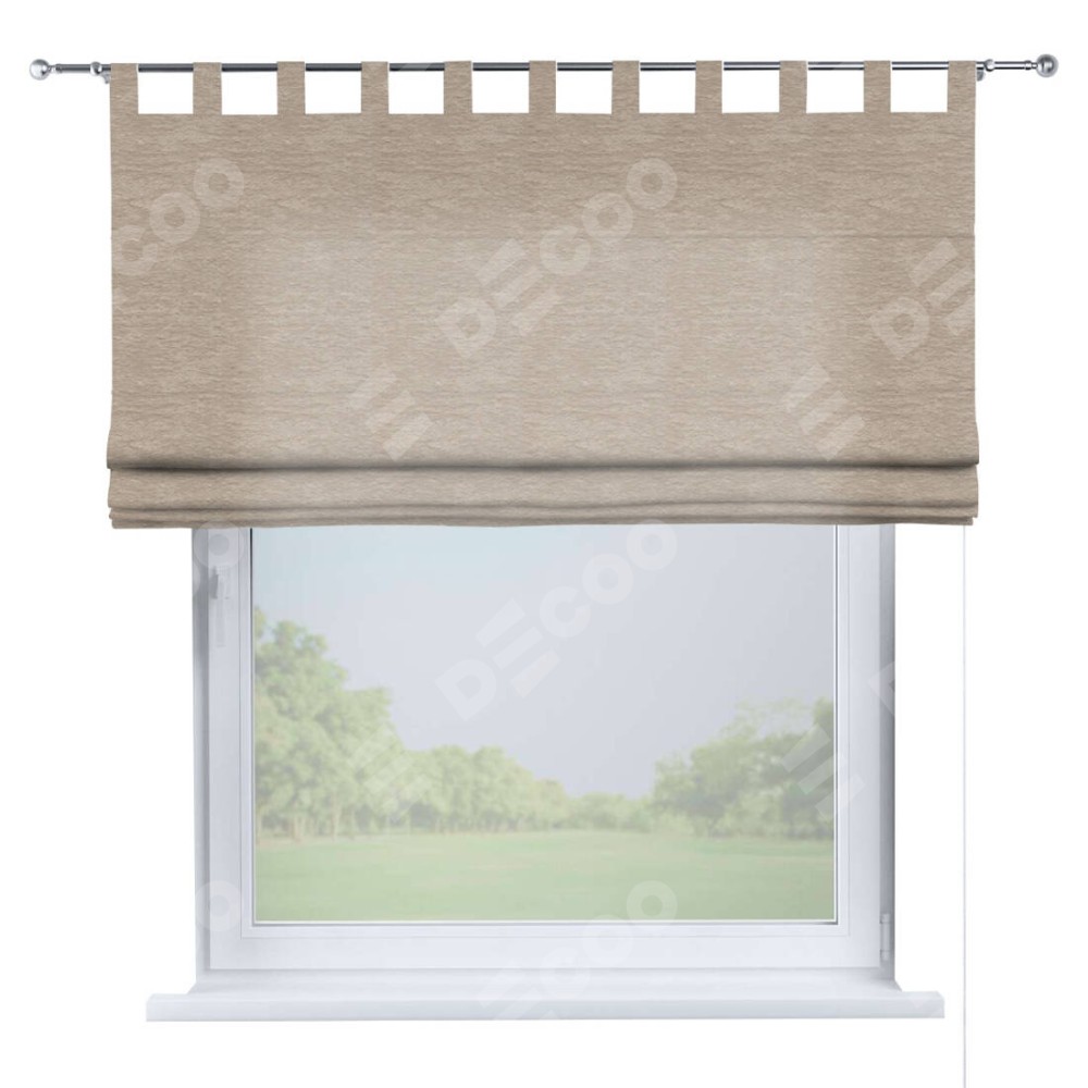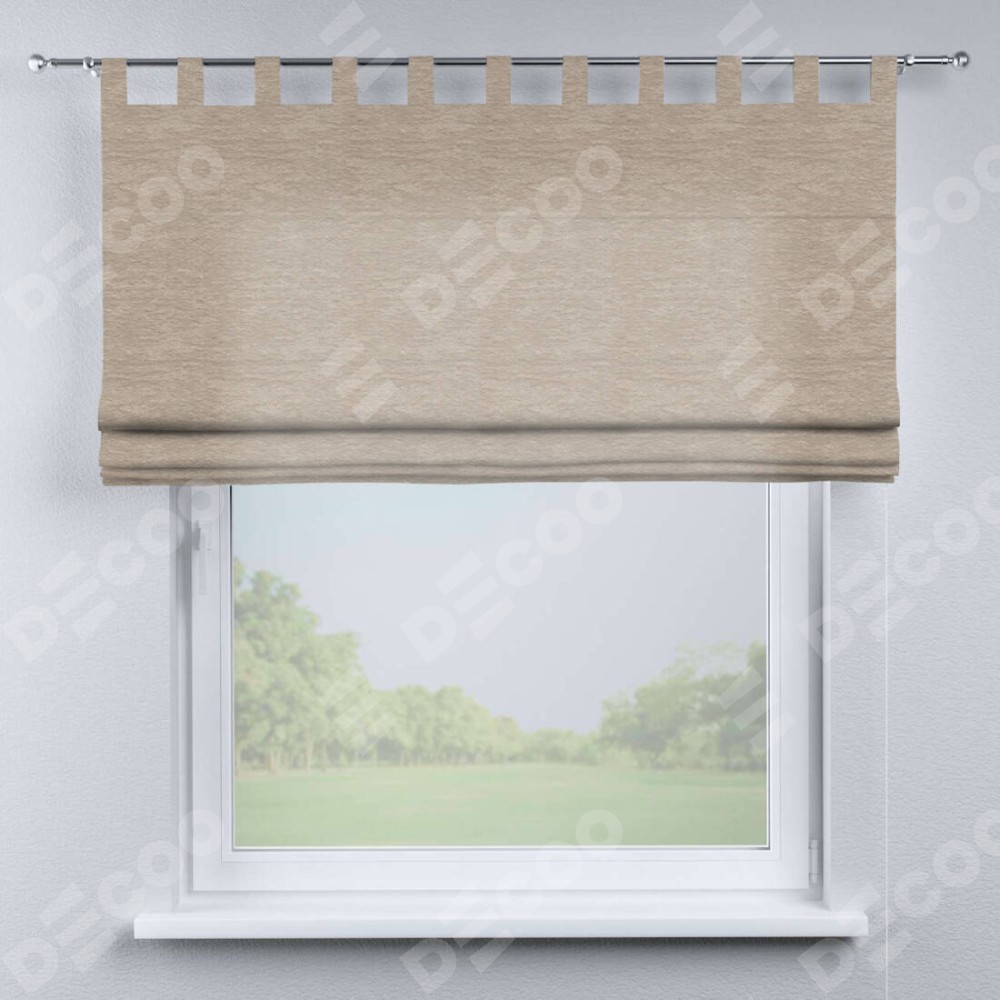 Римская штора производителя «Cortin», используется для проёма, пошита из ткани софт однотонный тёмно-бежевый, артикул ткани 1640. Данная модель пошита на петлях, комплектуется на выбор круглым карнизом и подходит для монтажа на стену. Римская штора на петлях имеет простую систему регулировки высоты, отличительным преимуществом данной модели является простой способ монтажа. Достаточно повесить ее на трубу и штора готова!