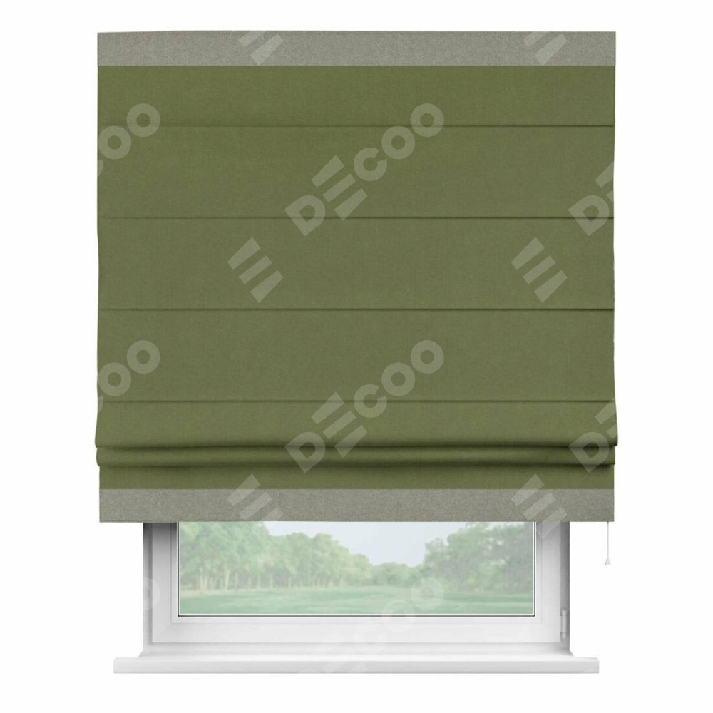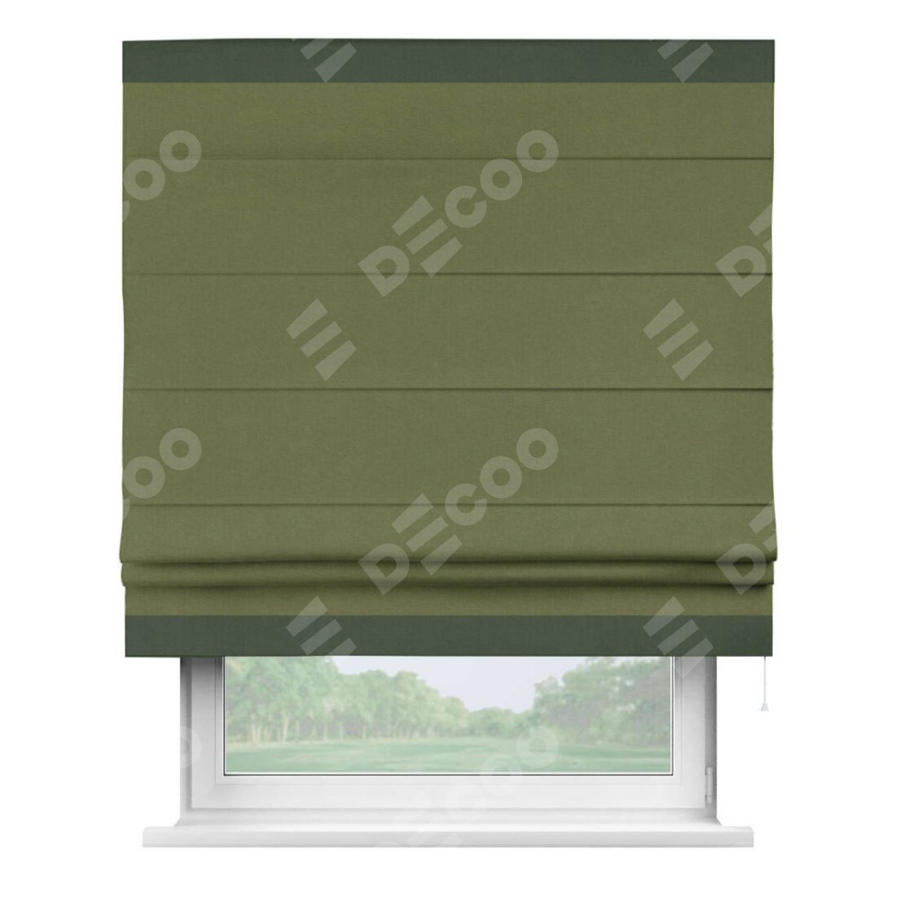 Римская штора «Кортин» с кантом Горизонт, для проема, лён блэкаут оливковый