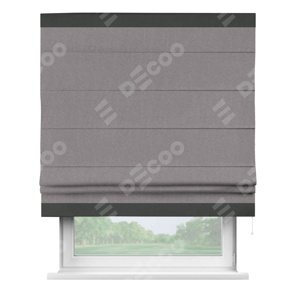 Римская штора производителя «Cortin», используется для проёма, пошита из ткани лён блэкаут сиреневый, артикул 69576. Отделка шторы кантом «Горизонт», ткань для канта используется из льна разной расцветки на выбор. Имеет универсальный механизм и подходит для монтажа: на потолок, на стену и в нишу.