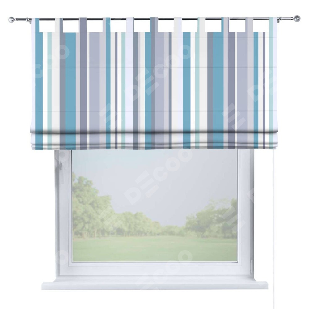 Римская штора производителя «Cortin», используется для проёма, пошита из ткани блэкаут с нанесением сублимационной печати «Морские линии». Данная модель пошита на петлях, комплектуется на выбор круглым карнизом и подходит для монтажа на стену. Римская штора на петлях имеет простую систему регулировки высоты, отличительным преимуществом данной модели является простой способ монтажа. Достаточно повесить ее на трубу и штора готова!