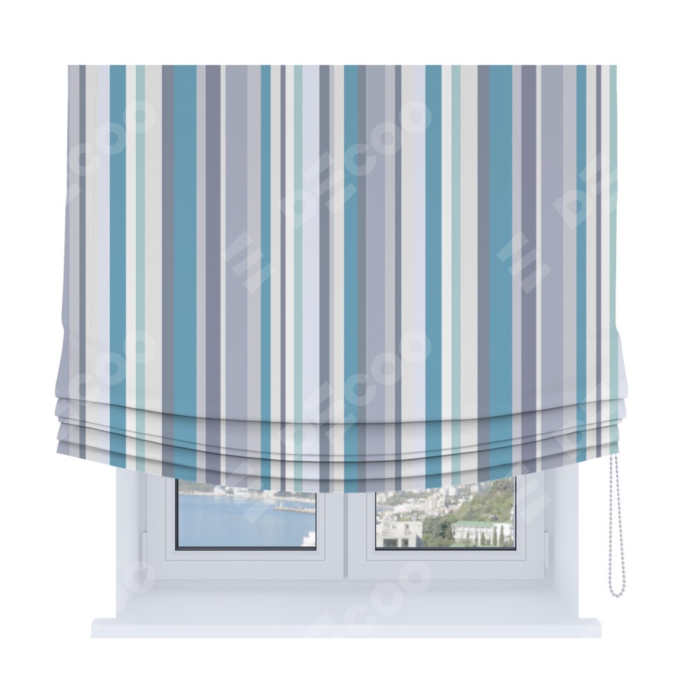 Римская штора Soft производителя «Cortin», используется для проёма, пошита из ткани блэкаут с нанесением сублимационной печати «Морские линии». Имеет универсальный механизм и подходит для монтажа: на потолок, на стену и в нишу. В отличие от стандартных римских штор, римская штора Soft не имеет горизонтальных вставок и нижнего отвеса. Это позволяет ткани произвольно драпироваться в свободные мягкие складки.