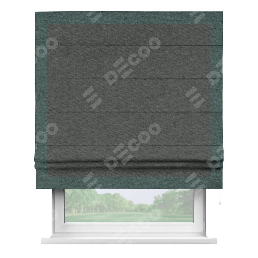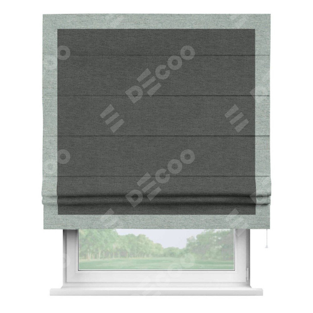 Римская штора производителя «Cortin», используется для проёма, пошита из ткани стиф димаут графит, артикул 44026. Отделка шторы кантом «Чесс», ткань для канта используется из стифа разной расцветки на выбор. Имеет универсальный механизм и подходит для монтажа: на потолок, на стену и в нишу.