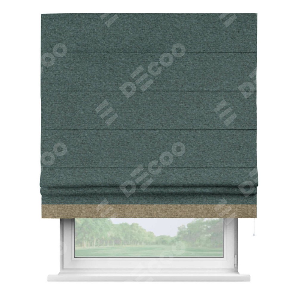 Римская штора «Кортин» с кантом Джестер, для проема, ткань стиф димаут сине-зелёный
