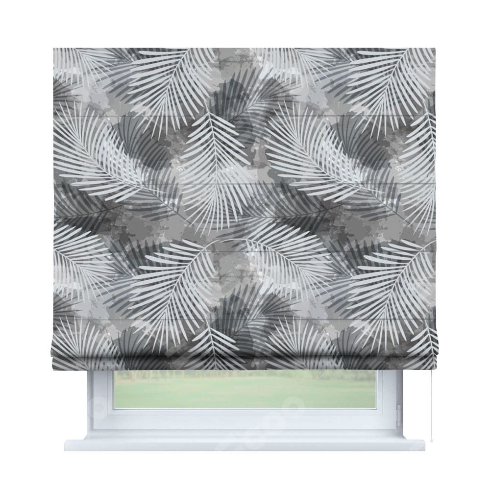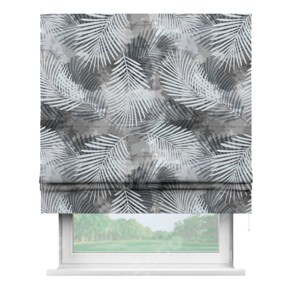 Римская штора производителя «Cortin», используется для проёма, пошита из ткани блэкаут с нанесением сублимационной печати «Листья в тени». Имеет универсальный механизм и подходит для монтажа: на потолок, на стену и в нишу.