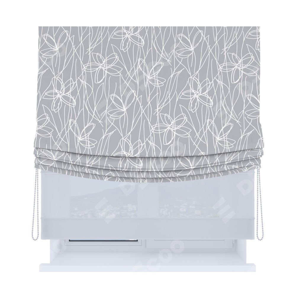 Римская штора «Кортин», день-ночь с мягкими складками, «Нарисованные цветы»