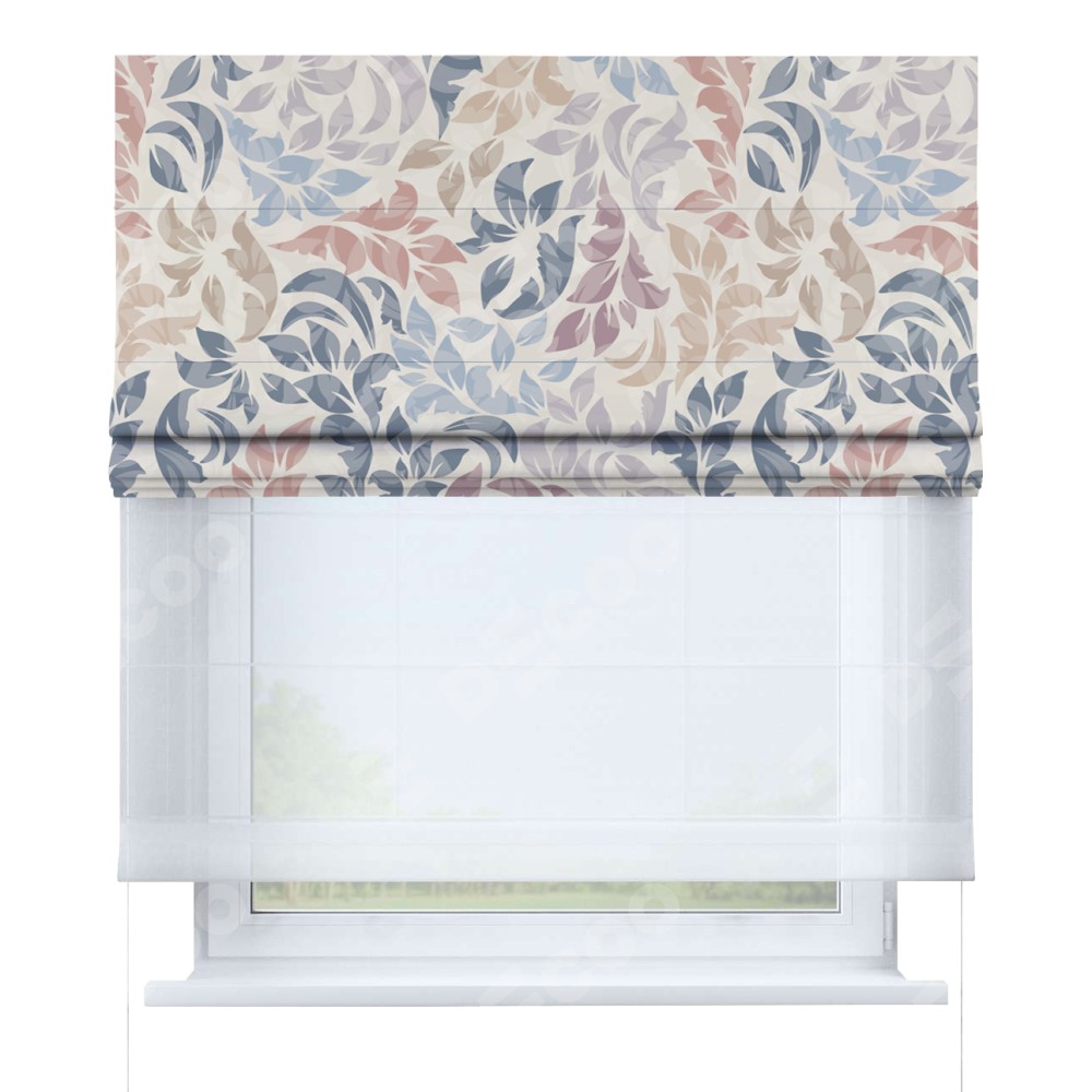 Римская штора день-ночь производителя «Cortin», используется для проёма, пошита из двух полотен, с лицевой блэкаут с нанесением сублимационной печати «Цветочная аура», вторая ткань тюль (по стандарту комплектуется тюль белого цвета артикул V-01). Имеет универсальный механизм и подходит для монтажа: на потолок, на стену и в нишу.