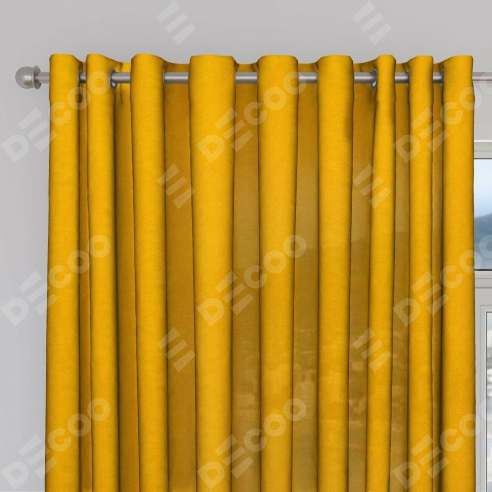Комплект прямых штор, от производителя «Cortin», пошиты из ткани вельвет желтый, артикул ткани 85547. Данная модель пошита на люверсах, комплектуется на выбор круглым карнизом и подходит для монтажа на стену. Прямые шторы на люверсах шьются по стандарту с коэффициентом 1/2 (на 100 см. ширины проёма 200 см. ширины ткани), отличительным преимуществом данной модели является простой способ монтажа. Достаточно повесить ее на трубу и штора готова!