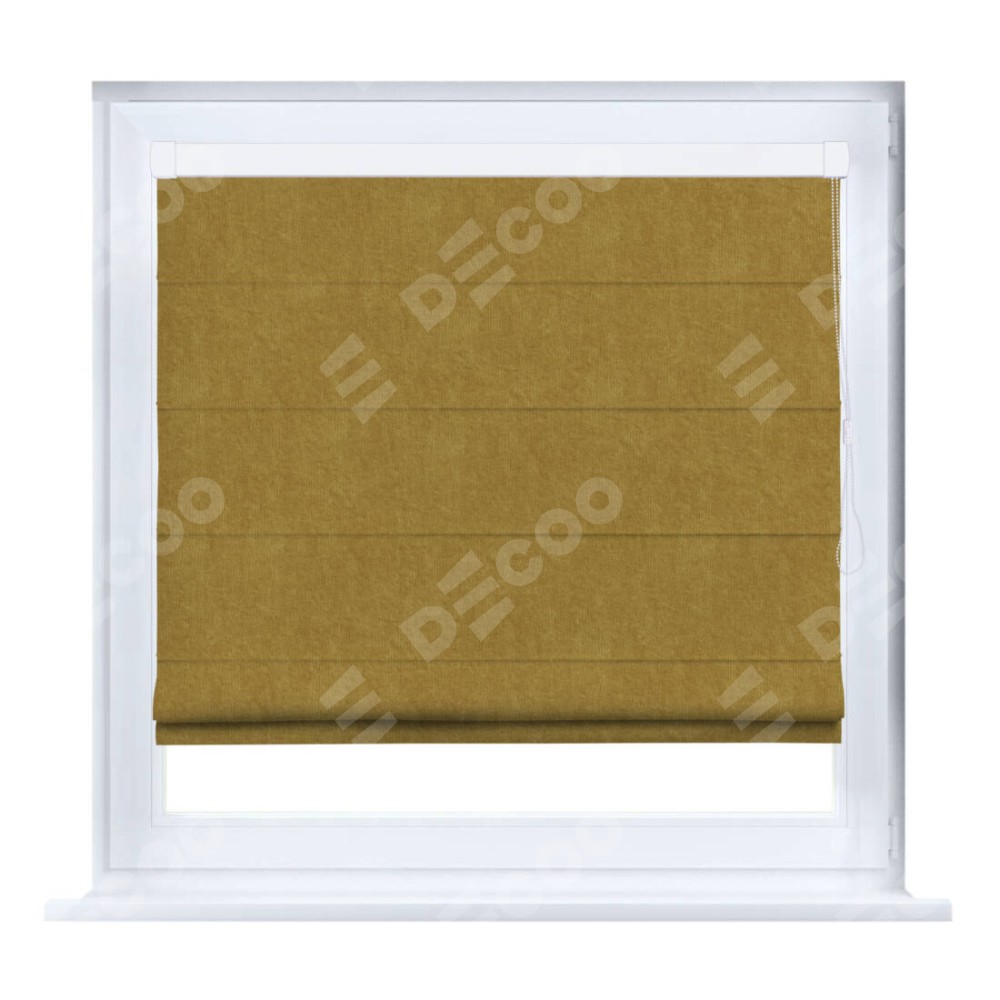 Римская штора производителя «Cortin», устанавливается на створку окна, пошита из ткани канвас горчица, артикул v-476. Штора шьётся по индивидуальным размерам, для данного типа римской шторы возможная ширина от 35 до 150 см., высота до 250 см.