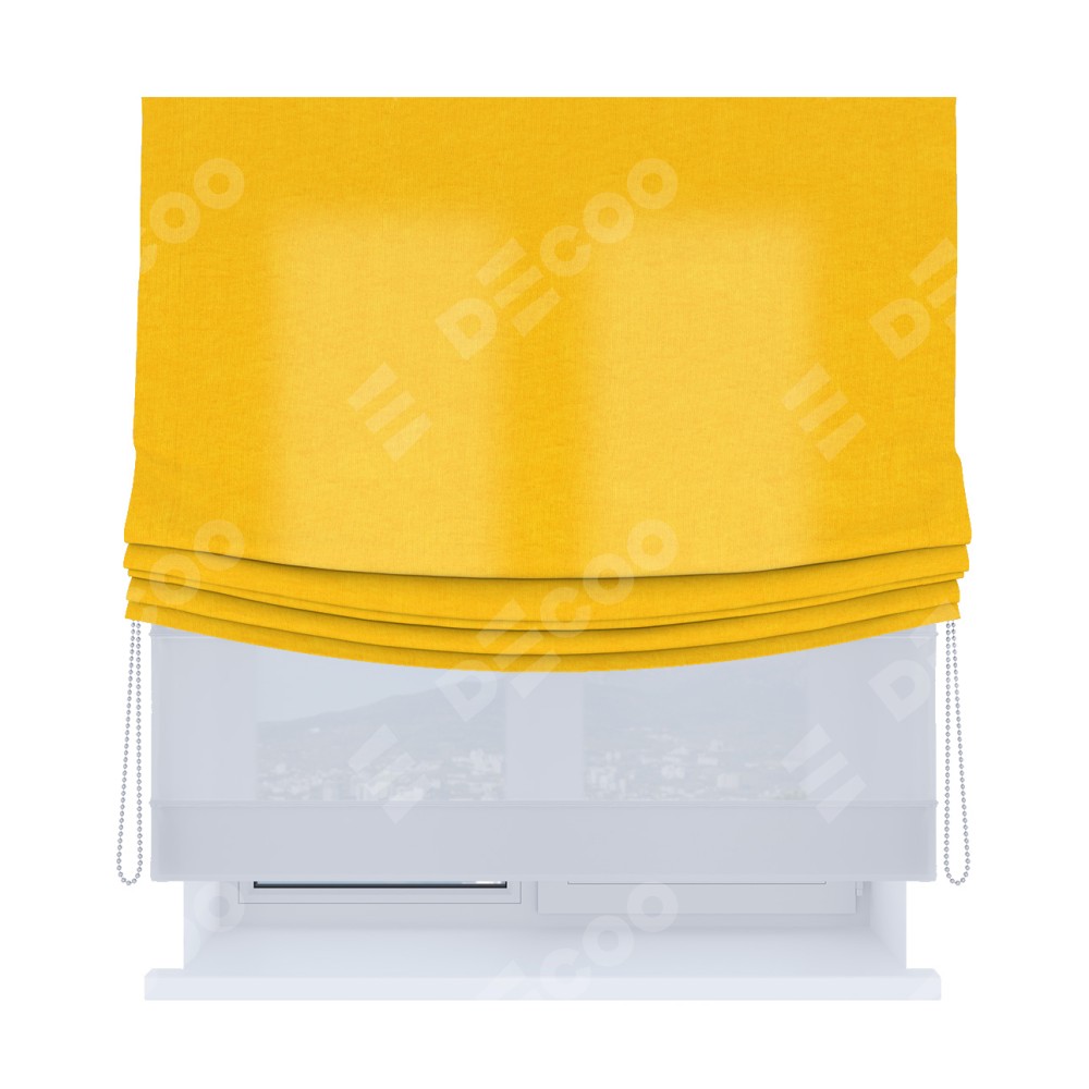 Римская штора день-ночь производителя «Cortin», используется для проёма, пошита из двух полотен, с лицевой стороны канвас желтый артикул v-344, вторая ткань тюль (по стандарту комплектуется тюль белого цвета артикул V-01). Имеет универсальный механизм и подходит для монтажа: на потолок, на стену и в нишу. Удобное управление каждой шторой отдельно.
