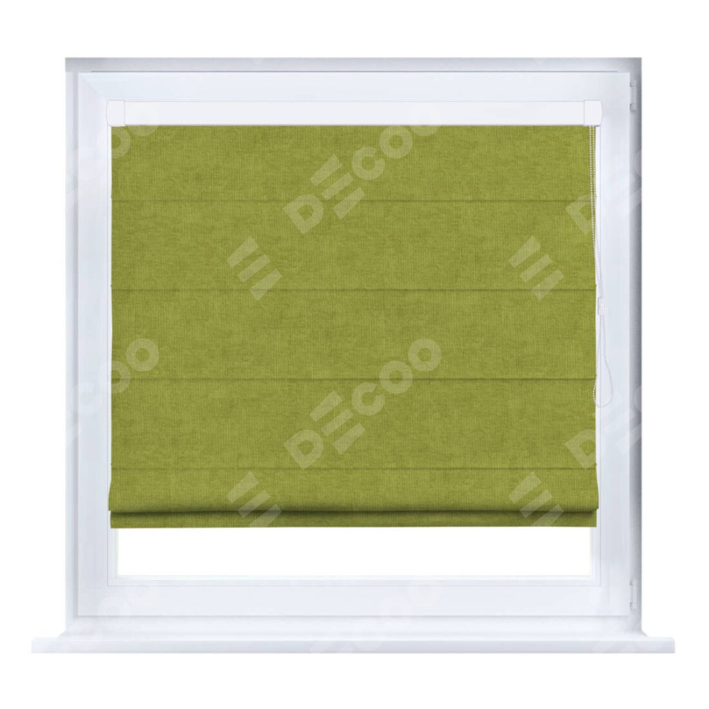 Римская штора производителя «Cortin», устанавливается на створку окна, пошита из ткани канвас зелёное яблоко, артикул v-370. Штора шьётся по индивидуальным размерам, для данного типа римской шторы возможная ширина от 35 до 150 см., высота до 250 см.