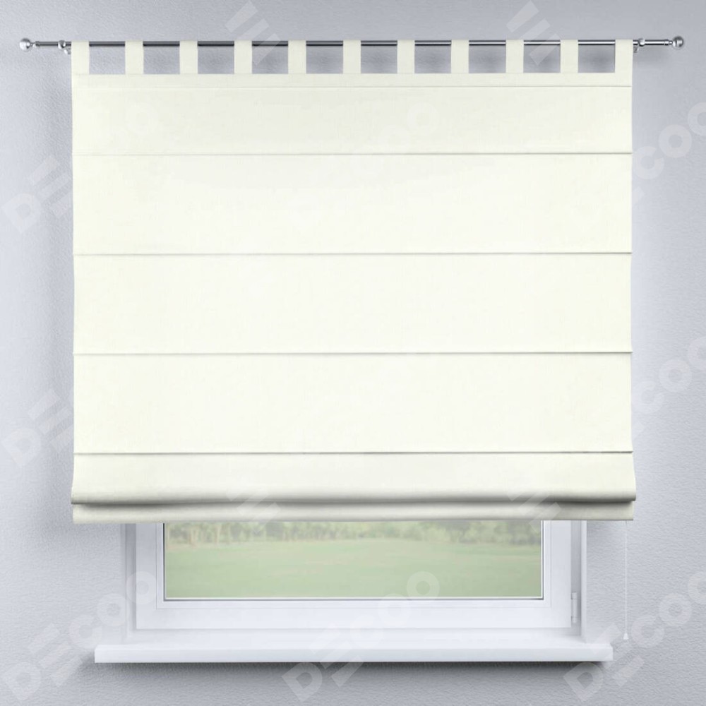 Римская штора производителя «Cortin», используется для проёма, пошита из ткани канвас молочный, артикул ткани v-93. Данная модель пошита на петлях, комплектуется на выбор круглым карнизом и подходит для монтажа на стену. Римская штора на петлях имеет простую систему регулировки высоты, отличительным преимуществом данной модели является простой способ монтажа. Достаточно повесить ее на трубу и штора готова!