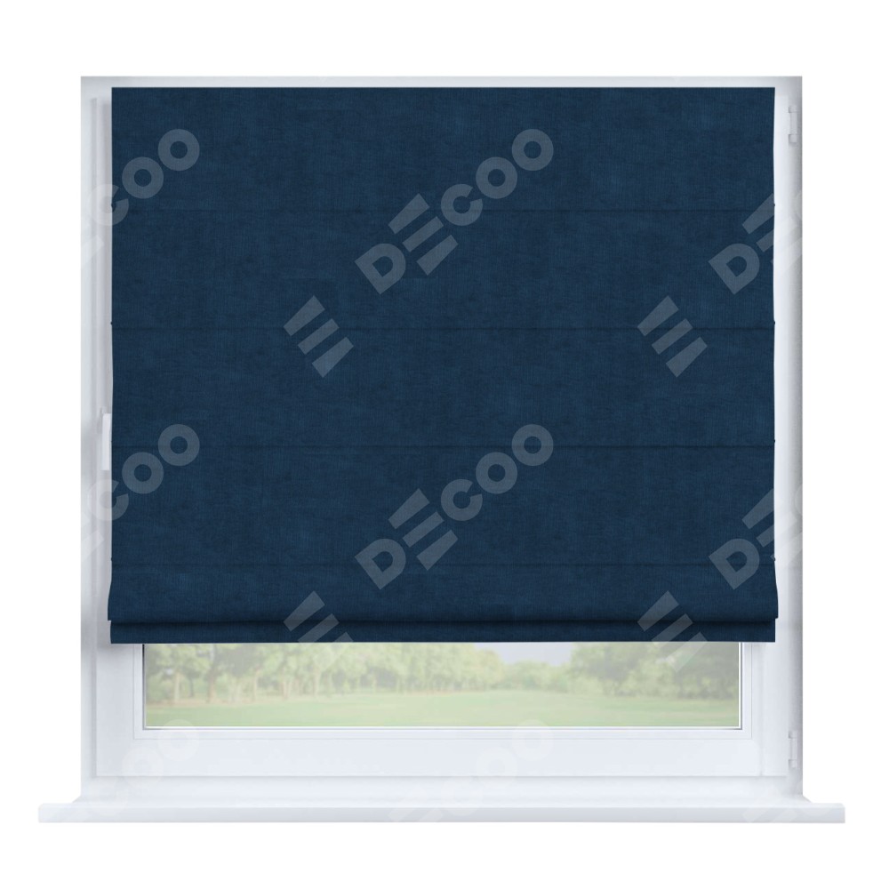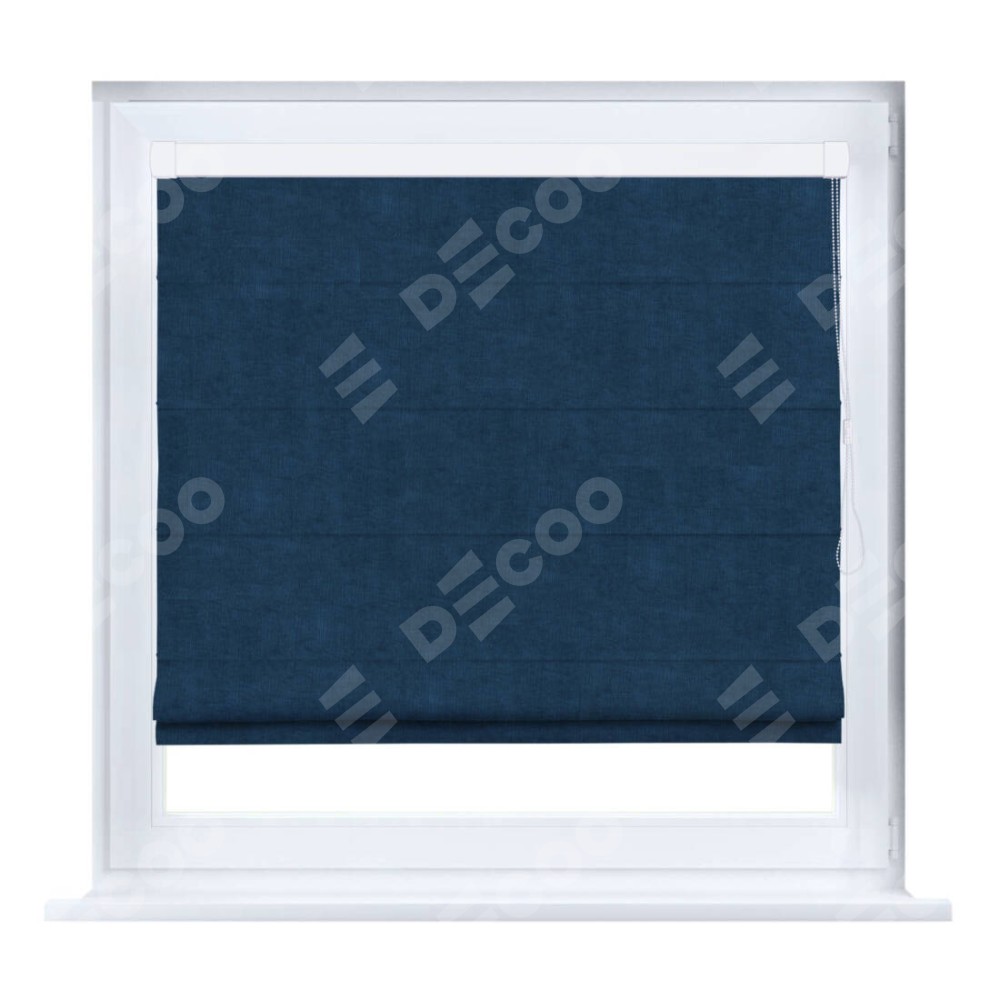Римская штора производителя «Cortin», устанавливается на створку окна, пошита из ткани канвас синий, артикул v-573. Штора шьётся по индивидуальным размерам, для данного типа римской шторы возможная ширина от 35 до 150 см., высота до 250 см.