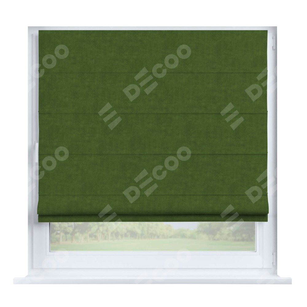 Римская штора производителя «Cortin», устанавливается на створку окна, пошита из ткани канвас трава, артикул v-473. Штора шьётся по индивидуальным размерам, для данного типа римской шторы возможная ширина от 35 до 150 см., высота до 250 см.