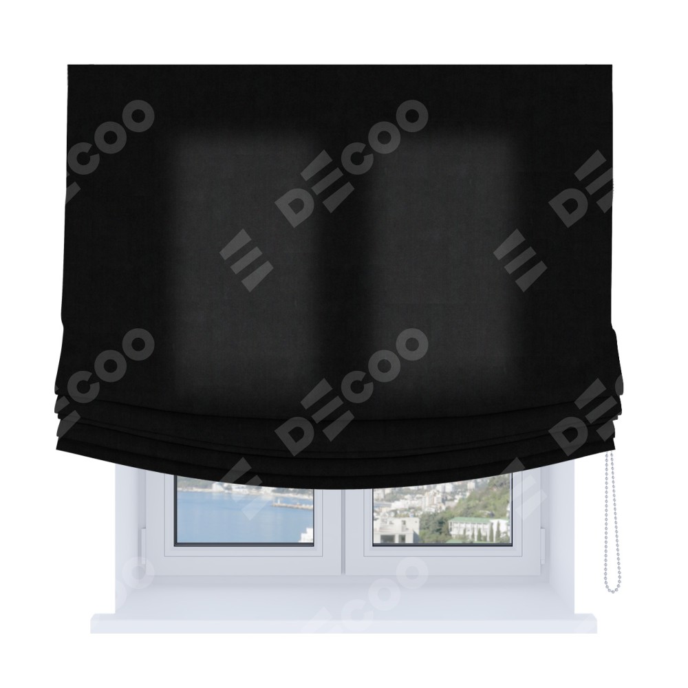 Римская штора Soft производителя «Cortin», используется для проёма, пошита из ткани канвас черный, артикул ткани v-194. Имеет универсальный механизм и подходит для монтажа: на потолок, на стену и в нишу. В отличие от стандартных римских штор, римская штора Soft не имеет горизонтальных вставок и нижнего отвеса. Это позволяет ткани произвольно драпироваться в свободные мягкие складки.
