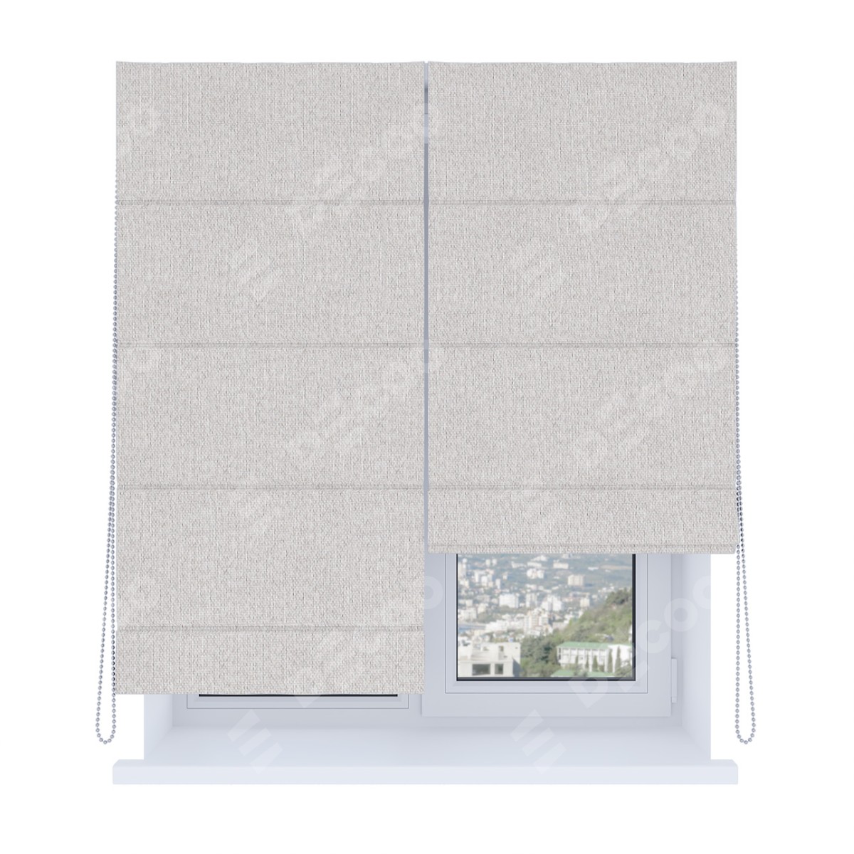 Римская штора производителя «Cortin», используется для проёма, пошита из ткани лён димаут светло-бежевый, артикул ткани 90993. Имеет универсальный механизм и подходит для монтажа: на потолок, на стену и в нишу. Удобное управление каждой шторой отдельно.