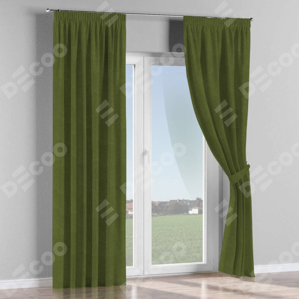 Комплект штор лён димаут салатовый, на тесьме «Карандаш»