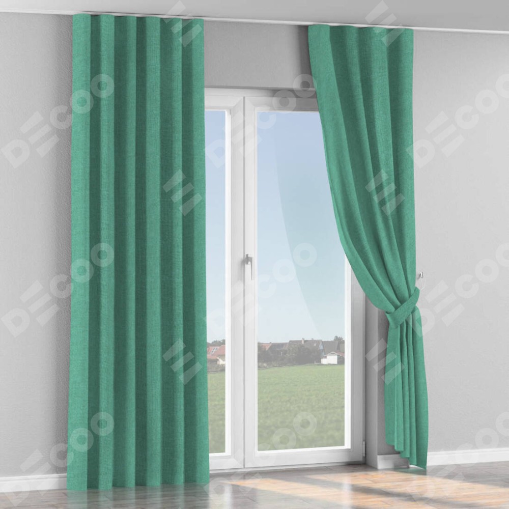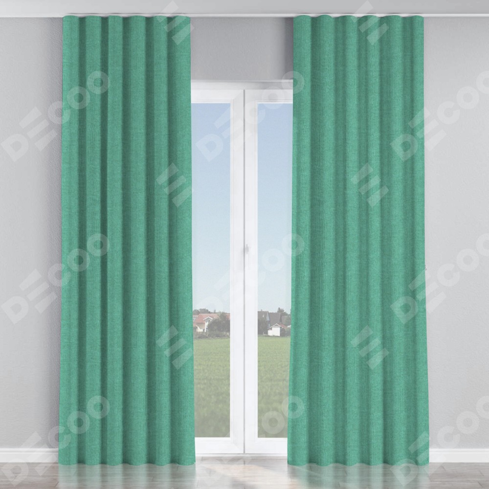 Комплект прямых штор, от производителя «Cortin», пошиты из ткани лён светло-бирюзовый, артикул ткани 53435. С изнаночной стороны в верхней части штор пристрачивается шторная лента с декоративными складками «Волна». Для создания элегантных складок прямые шторы шьются по стандарту с коэффициентом 1:2 (на 100 см. ширины проёма 200 см. ширины ткани).