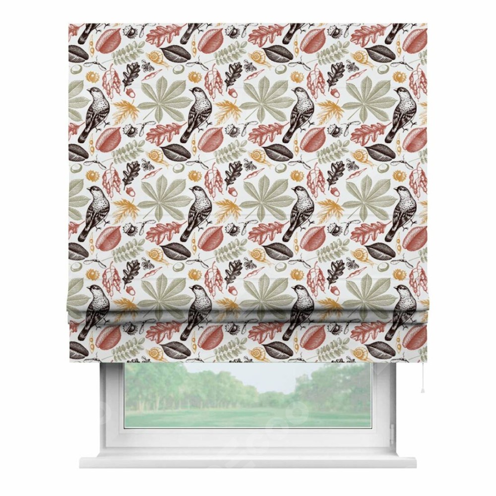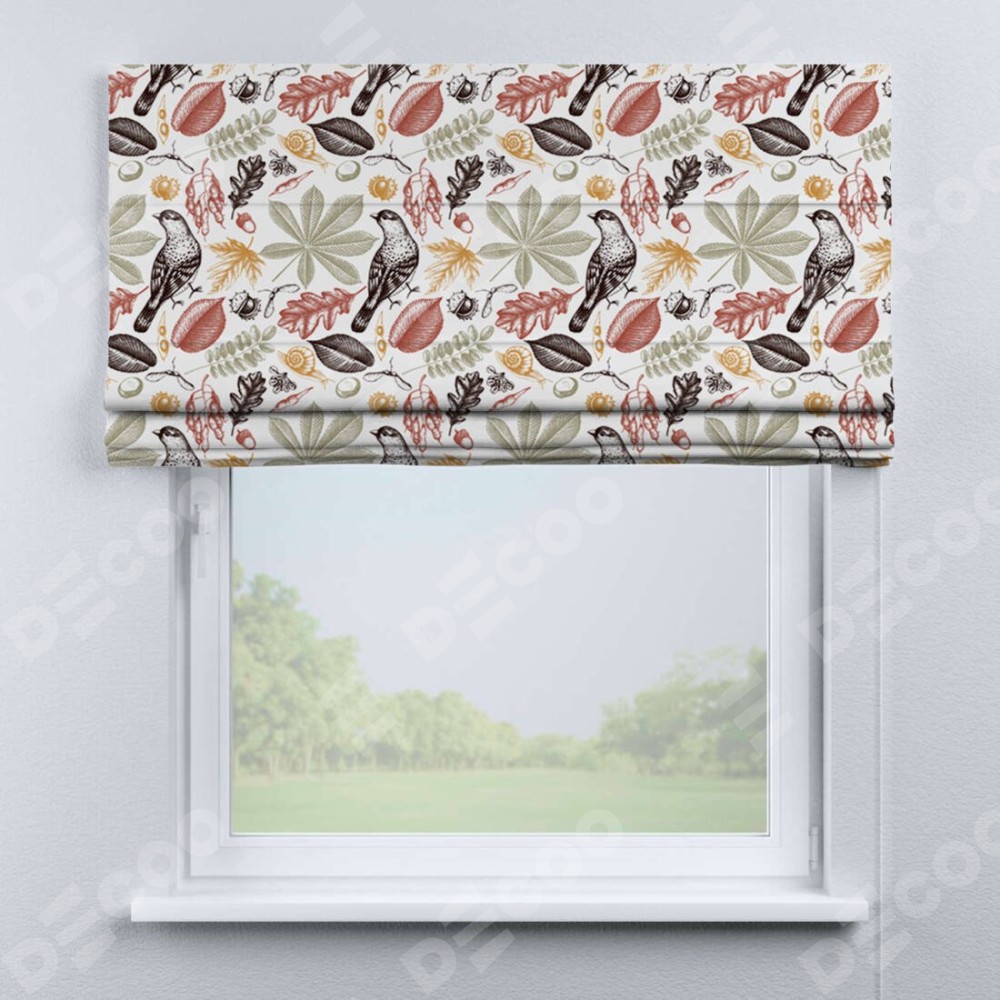 Римская штора производителя «Cortin», используется для проёма, пошита из ткани блэкаут с нанесением сублимационной печати «Краски осени». Имеет универсальный механизм и подходит для монтажа: на потолок, на стену и в нишу.