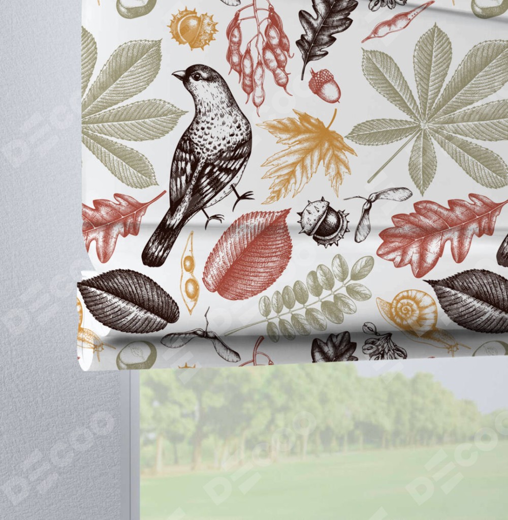 Римская штора производителя «Cortin», используется для проёма, пошита из ткани блэкаут с нанесением сублимационной печати «Краски осени». Данная модель пошита на петлях, комплектуется на выбор круглым карнизом и подходит для монтажа на стену. Римская штора на петлях имеет простую систему регулировки высоты, отличительным преимуществом данной модели является простой способ монтажа. Достаточно повесить ее на трубу и штора готова!
