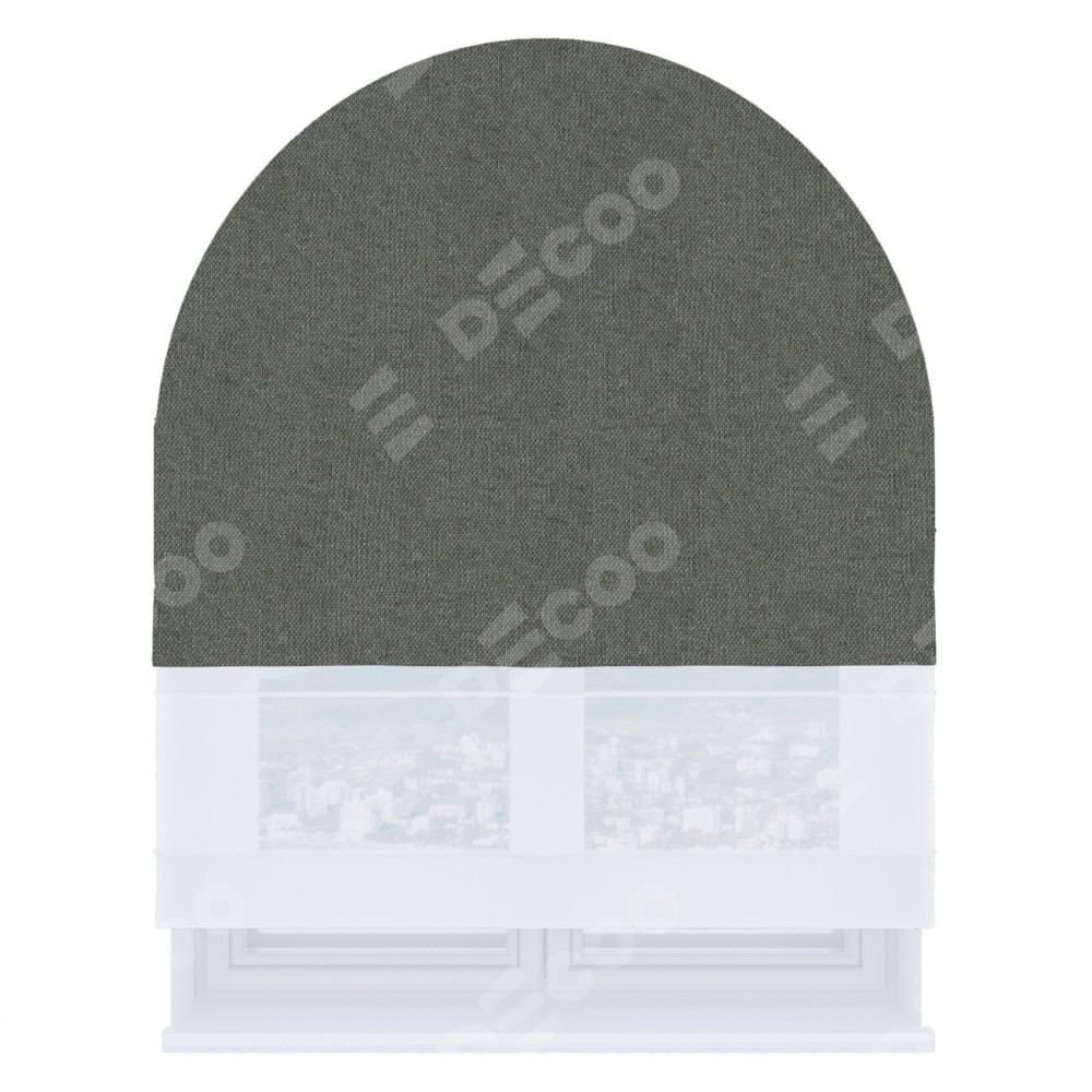 Римская штора «Кортин», лён димаут тёмно-серый, день-ночь для арочного проёма