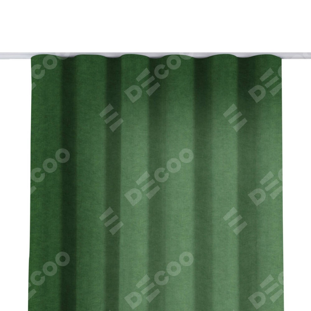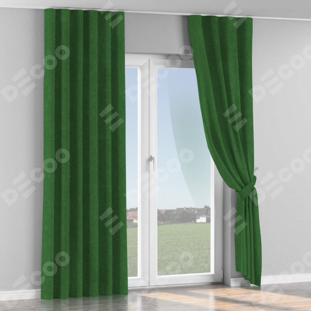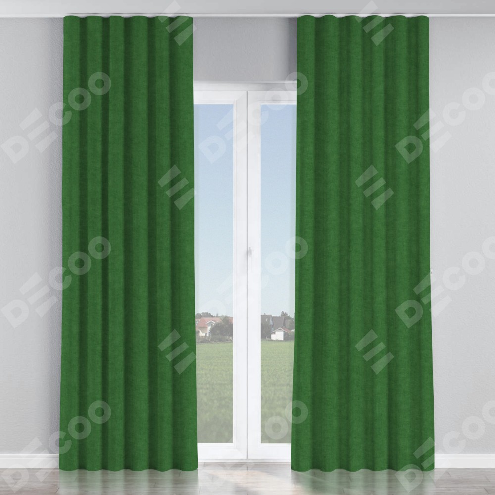 Комплект прямых штор, от производителя «Cortin», пошиты из ткани канвас зелёный, артикул ткани v-16. С изнаночной стороны в верхней части штор пристрачивается шторная лента с декоративными складками «Волна». Для создания элегантных складок прямые шторы шьются по стандарту с коэффициентом 1:2 (на 100 см. ширины проёма 200 см. ширины ткани).