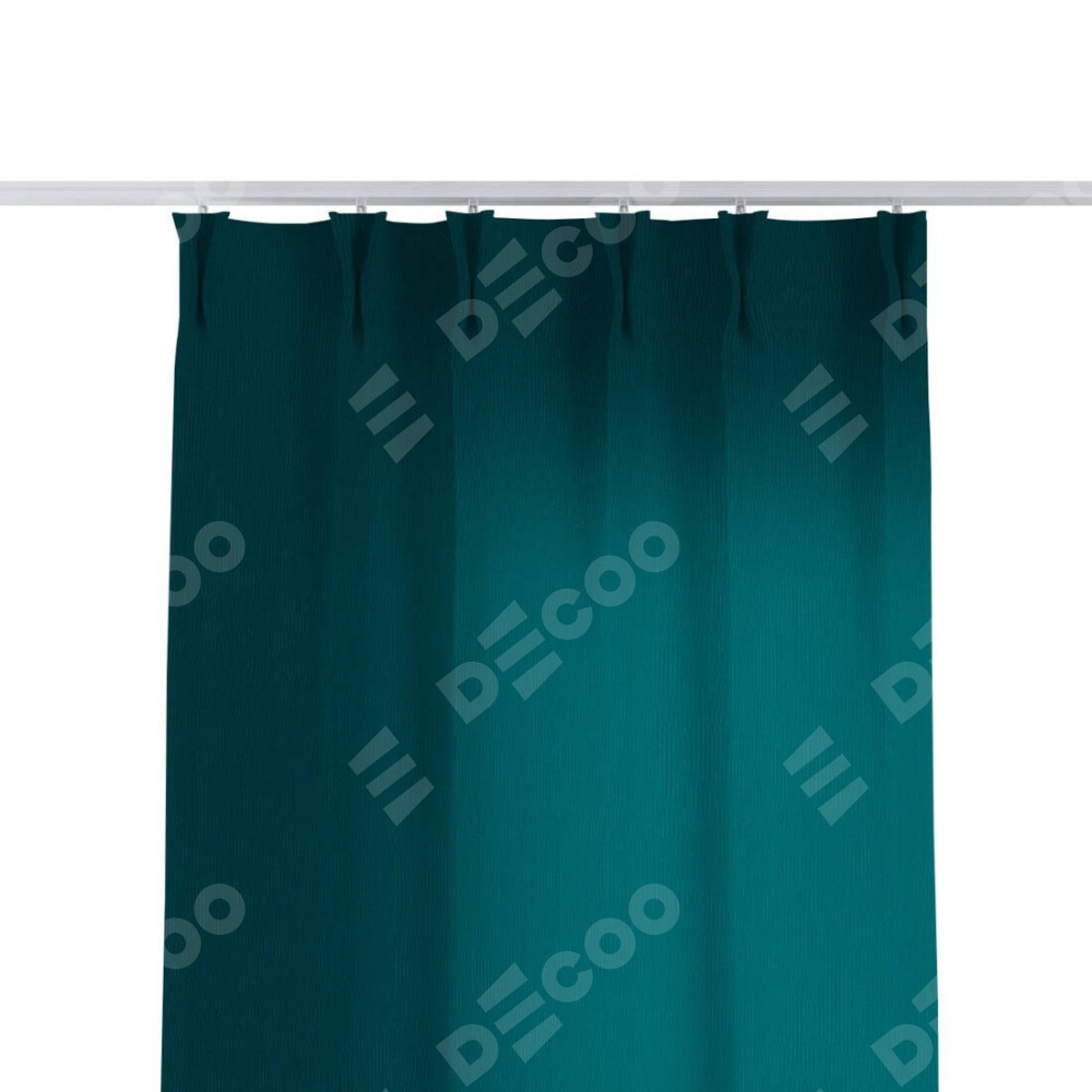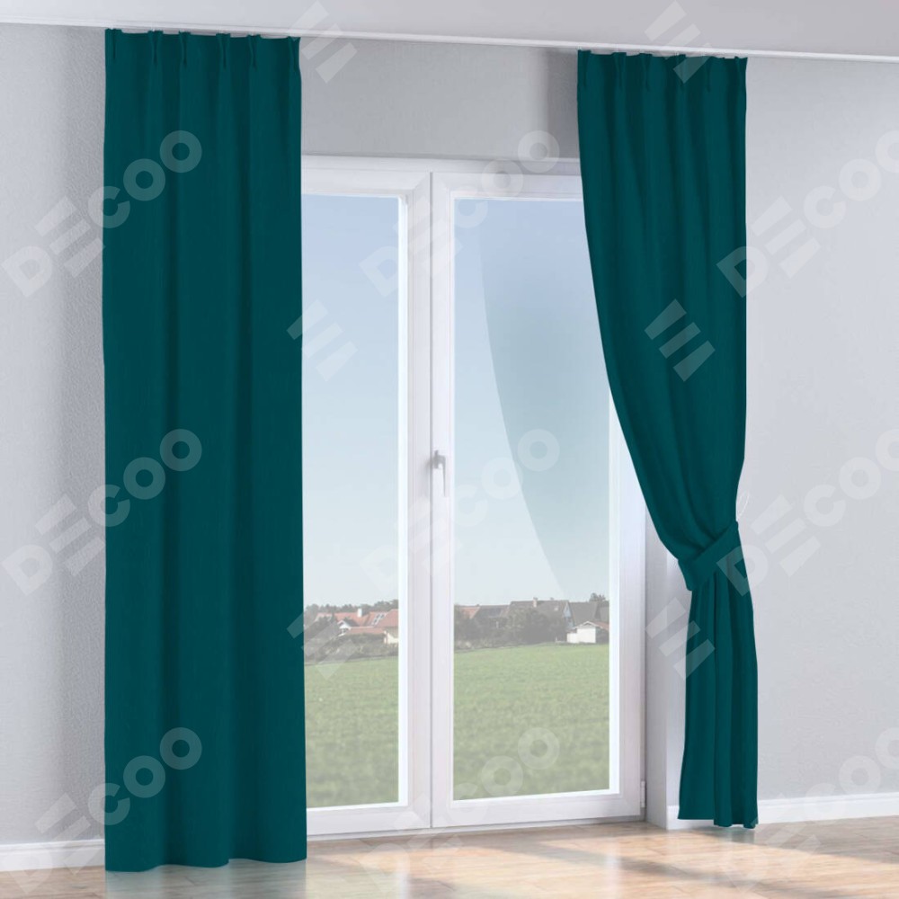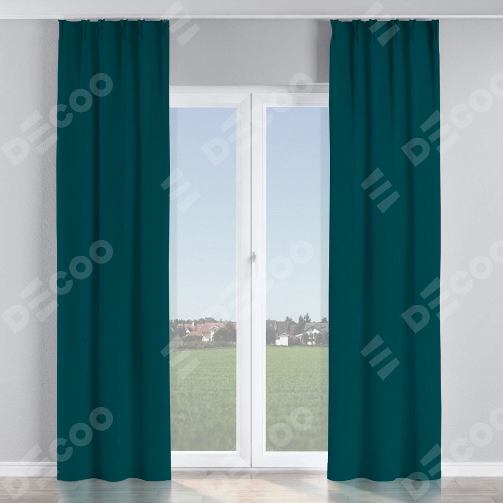 Комплект прямых штор, от производителя «Cortin», пошиты из ткани канвас изумрудный, артикул ткани v-12487. С изнаночной стороны в верхней части штор пристрачивается шторная лента с декоративными складками «Кустик». Для создания элегантных складок прямые шторы шьются по стандарту с коэффициентом 1:2 (на 100 см. ширины проёма 200 см. ширины ткани).