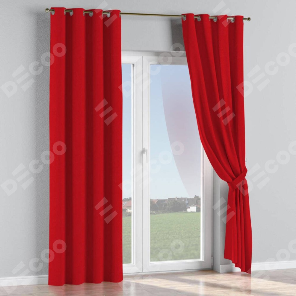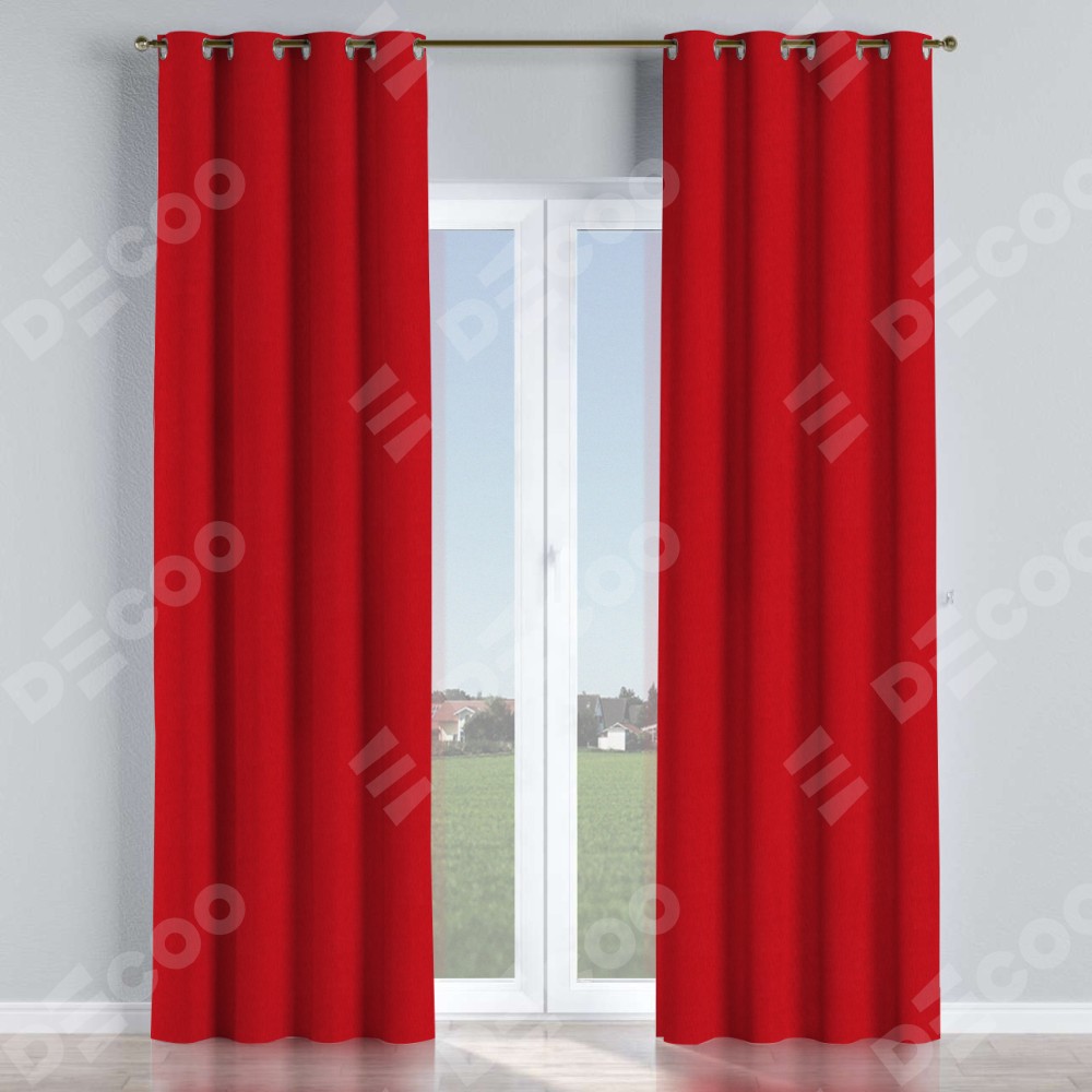 Комплект прямых штор, от производителя «Cortin», пошиты из ткани канвас красный, артикул ткани v-113. Данная модель пошита на люверсах, комплектуется на выбор круглым карнизом и подходит для монтажа на стену или потолок. Прямые шторы на люверсах шьются по стандарту с коэффициентом 1/2 (на 100 см. ширины проёма 200 см. ширины ткани), отличительным преимуществом данной модели является простой способ монтажа. Достаточно повесить ее на трубу и штора готова!