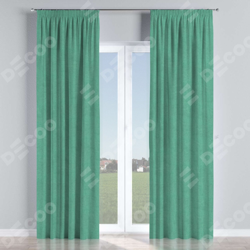 Комплект прямых штор, от производителя «Cortin», пошиты из ткани канвас мятный, артикул ткани v-248. С изнаночной стороны в верхней части штор пристрачивается шторная лента с декоративными складками «Карандаш». Для создания элегантных складок прямые шторы шьются по стандарту с коэффициентом 1:2 (на 100 см. ширины проёма 200 см. ширины ткани).