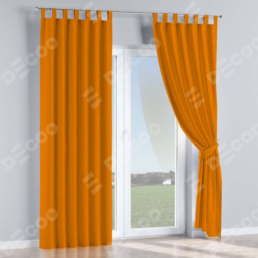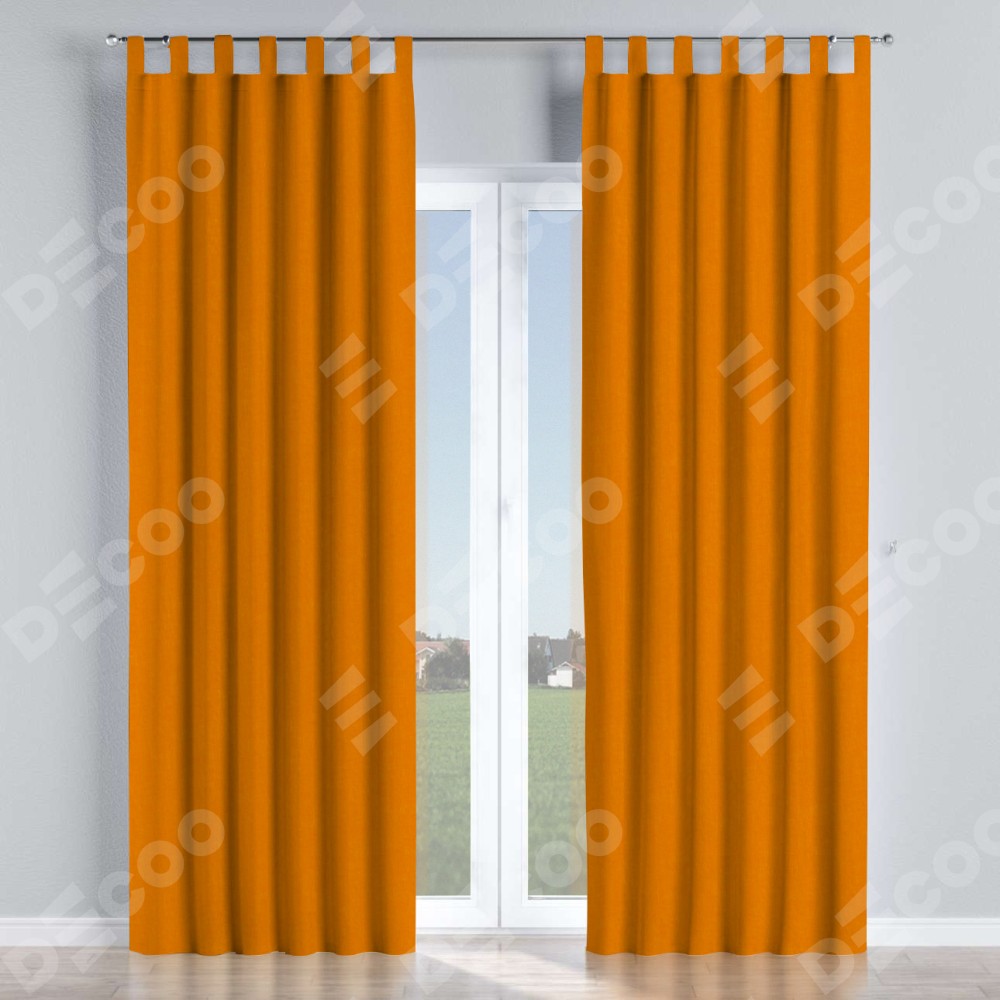 Комплект прямых штор, от производителя «Cortin», пошиты из ткани канвас оранжевый, артикул ткани v-106. Данная модель пошита на петлях, комплектуется на выбор круглым карнизом и подходит для монтажа на стену или потолок. Прямые шторы на петлях шьются по стандарту с коэффициентом 1/2 (на 100 см. ширины проёма 200 см. ширины ткани), отличительным преимуществом данной модели является простой способ монтажа. Достаточно повесить ее на трубу и штора готова!