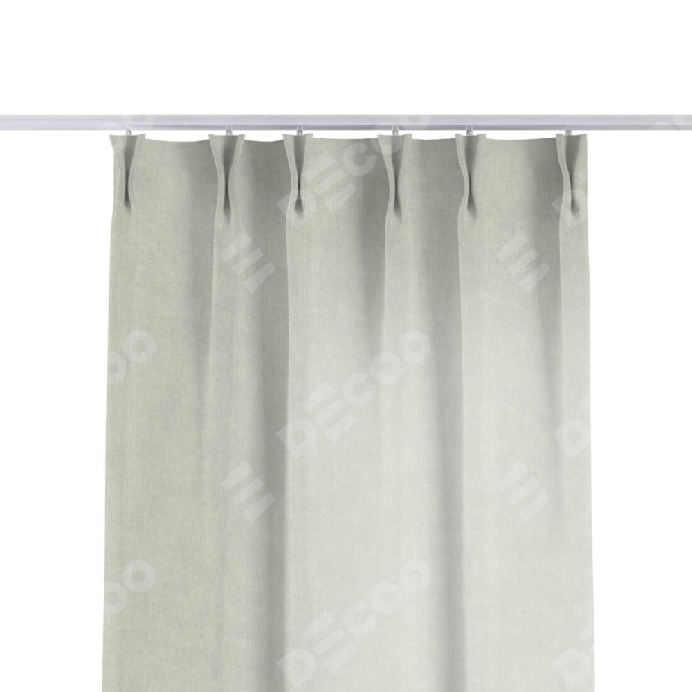 Комплект прямых штор, от производителя «Cortin», пошиты из ткани канвас светло-серый, артикул ткани v-371. С изнаночной стороны в верхней части штор пристрачивается шторная лента с декоративными складками «Кустик». Для создания элегантных складок прямые шторы шьются по стандарту с коэффициентом 1:2 (на 100 см. ширины проёма 200 см. ширины ткани).