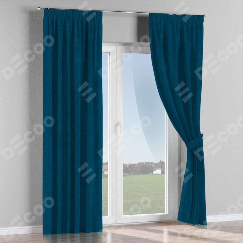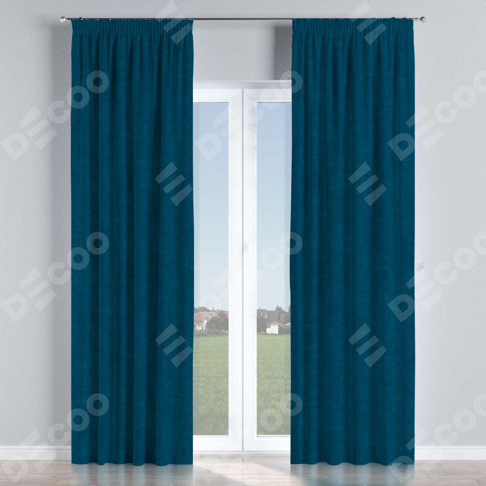 Комплект прямых штор, от производителя «Cortin», пошиты из ткани канвас синий, артикул ткани v-573. С изнаночной стороны в верхней части штор пристрачивается шторная лента с декоративными складками «Карандаш». Для создания элегантных складок прямые шторы шьются по стандарту с коэффициентом 1:2 (на 100 см. ширины проёма 200 см. ширины ткани).